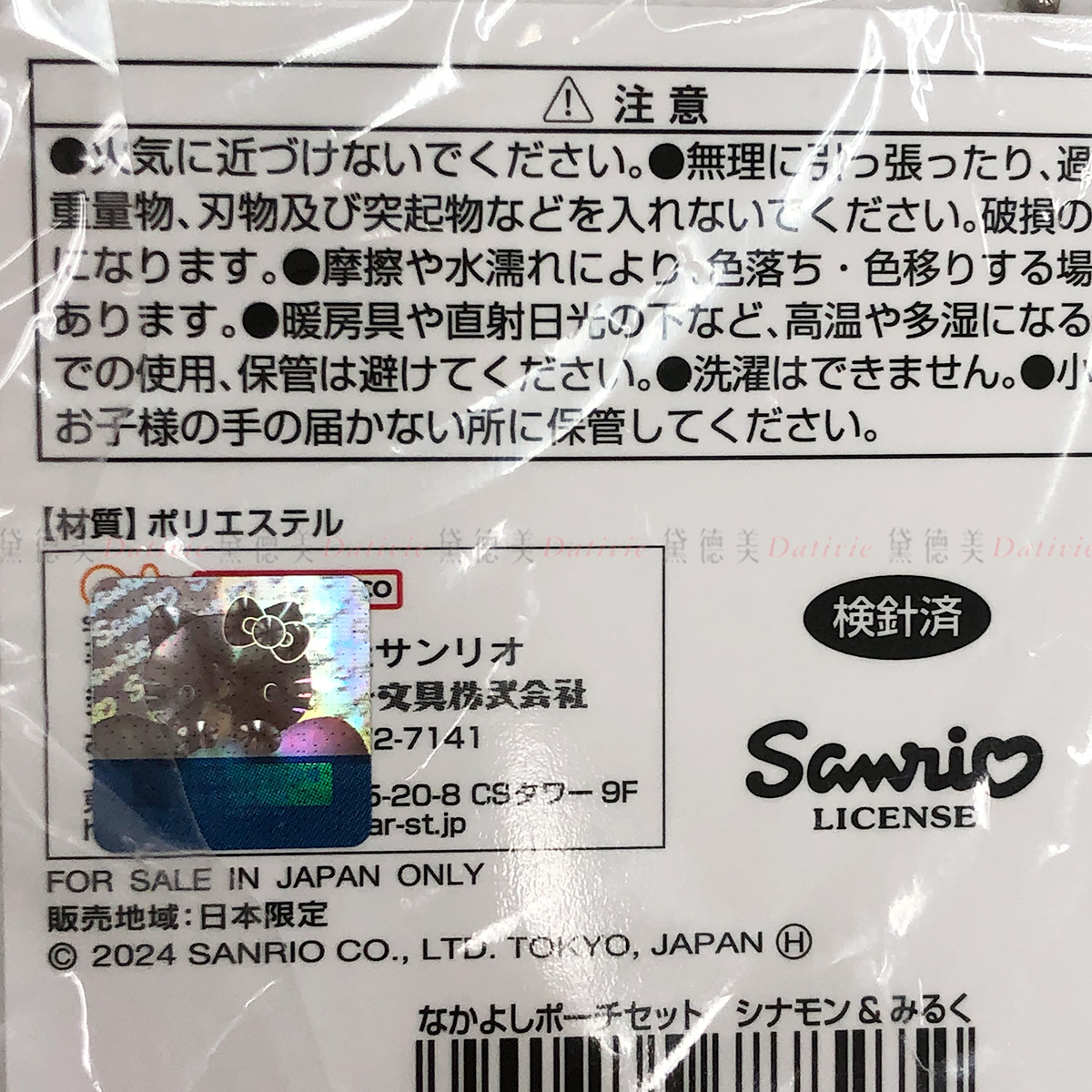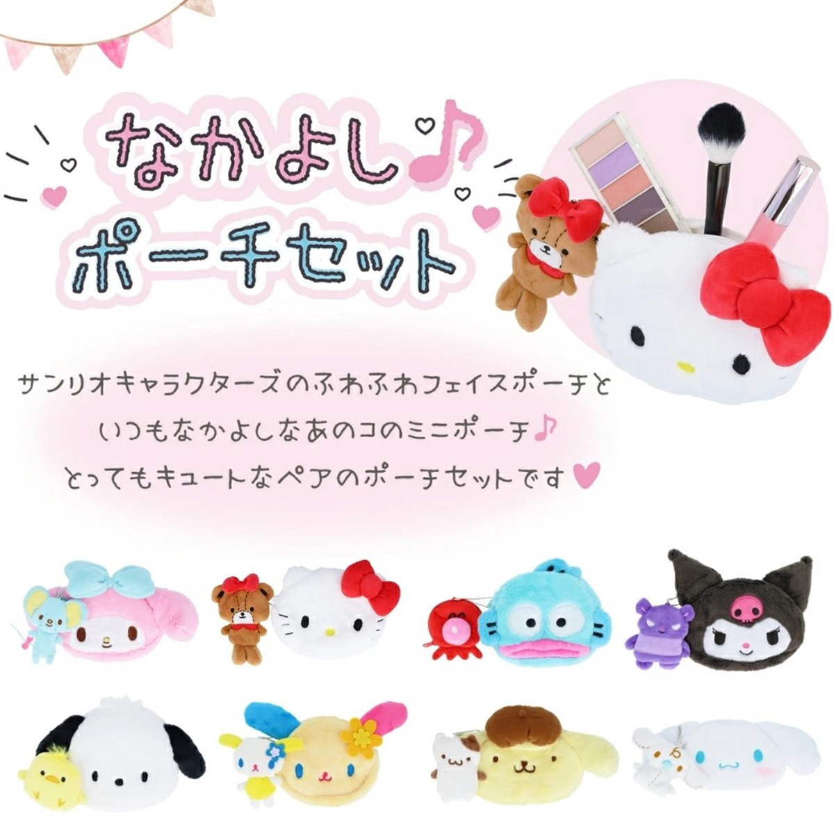 絨毛收納包2入組-三麗鷗 Sanrio 日本進口正版授權 【款式】KITTY/庫洛米/大耳狗/美樂蒂/漢頓/帕洽狗/布丁狗/花小兔 【尺寸】大臉:約200 x 160 x 50mm、迷你袋:約 75 x 100 x 25mm(因角色而異) 【材質】聚酯纖維 【產地】中國(日本監製)