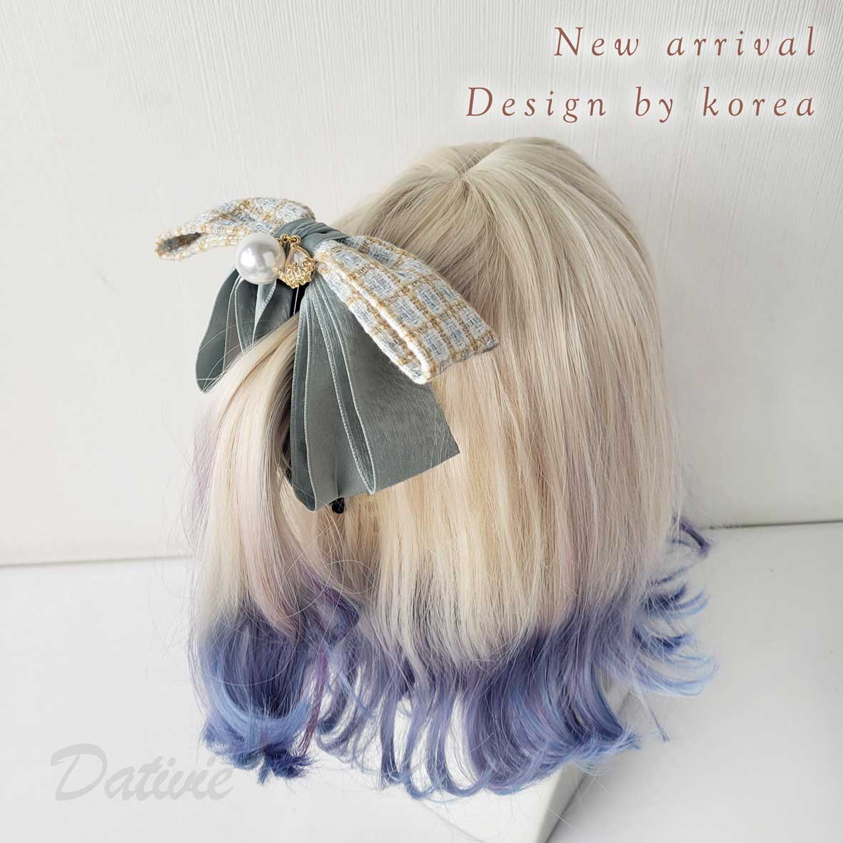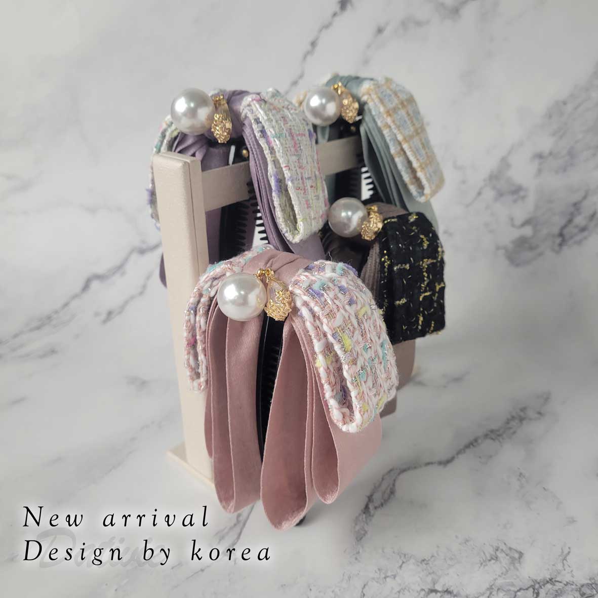 韓國 格紋 珍珠 四色 造型 蝴蝶結 相交夾