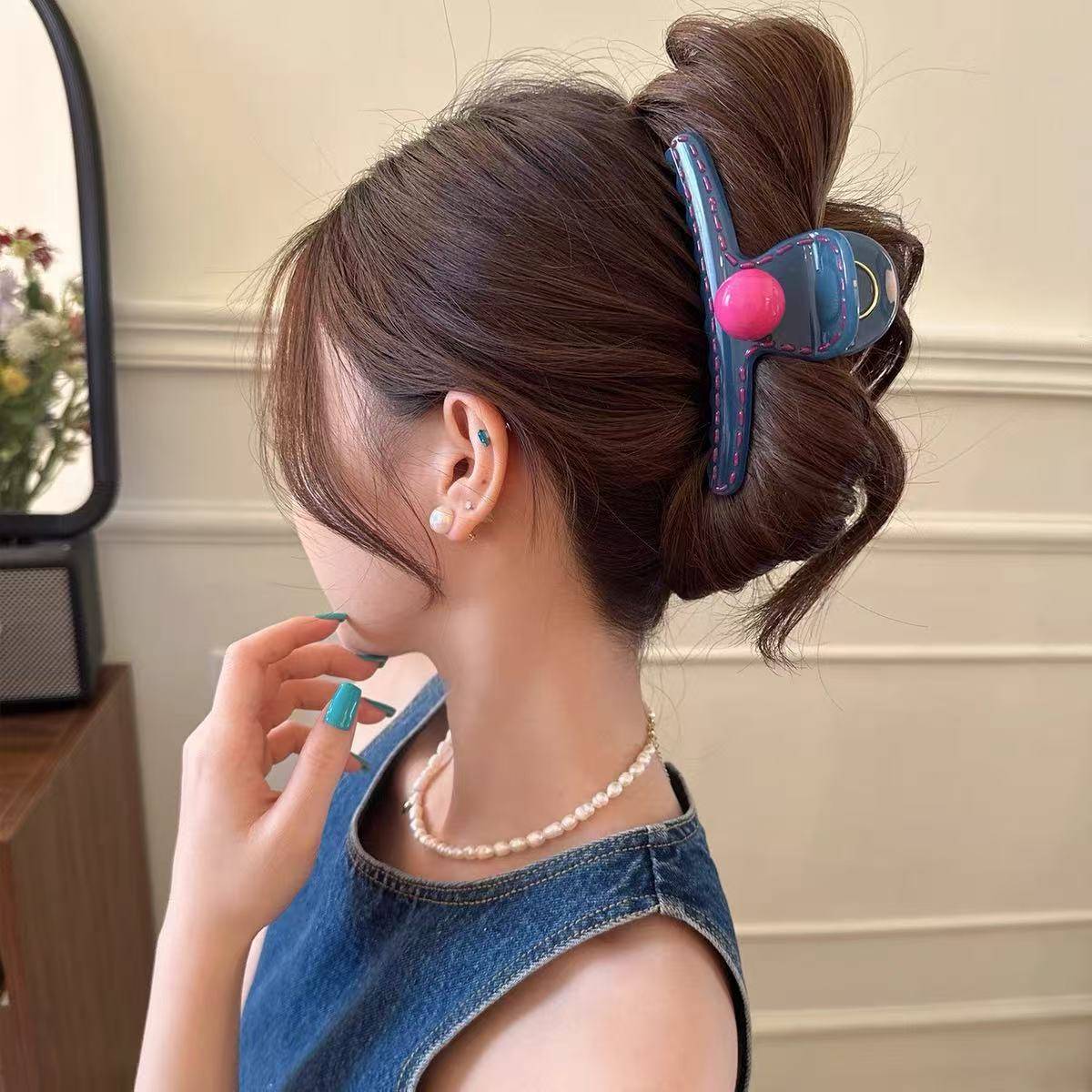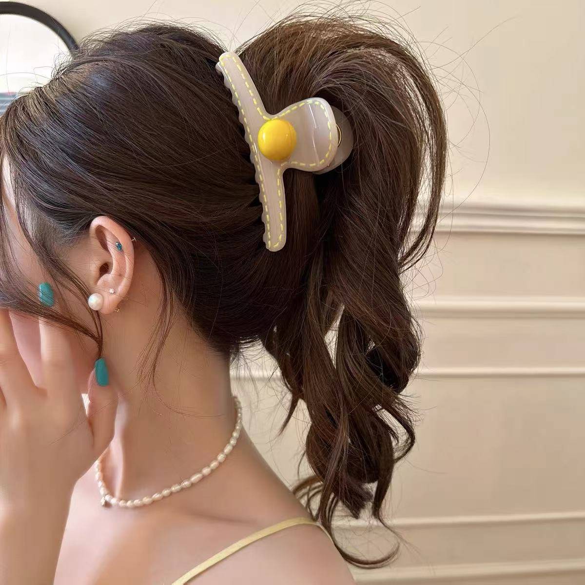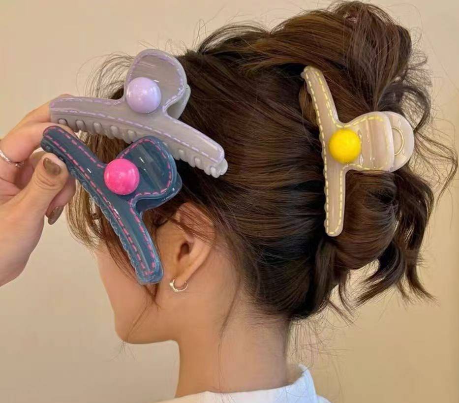 韓國 可愛 撞色 珠珠 虛線 造型 四色 鯊魚夾