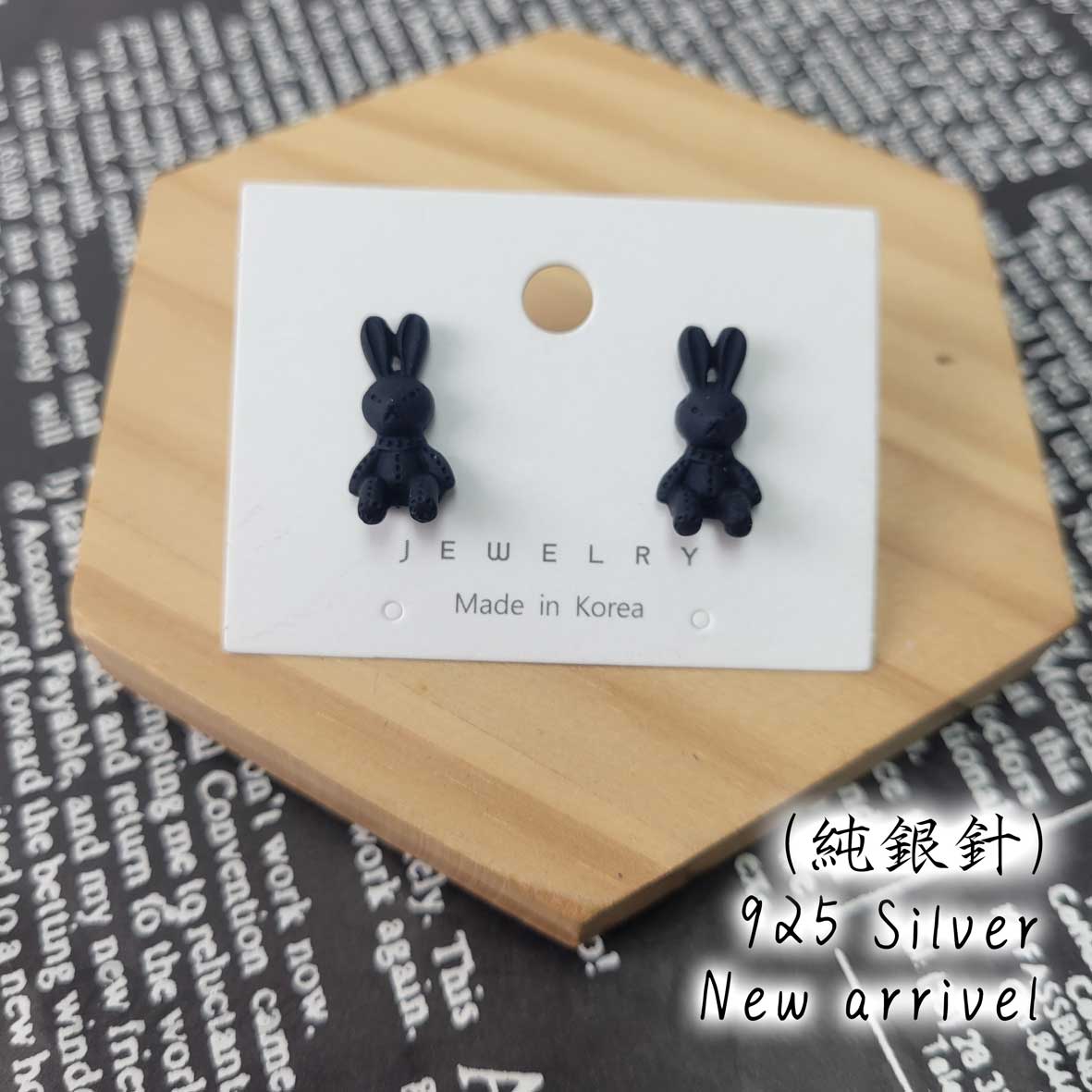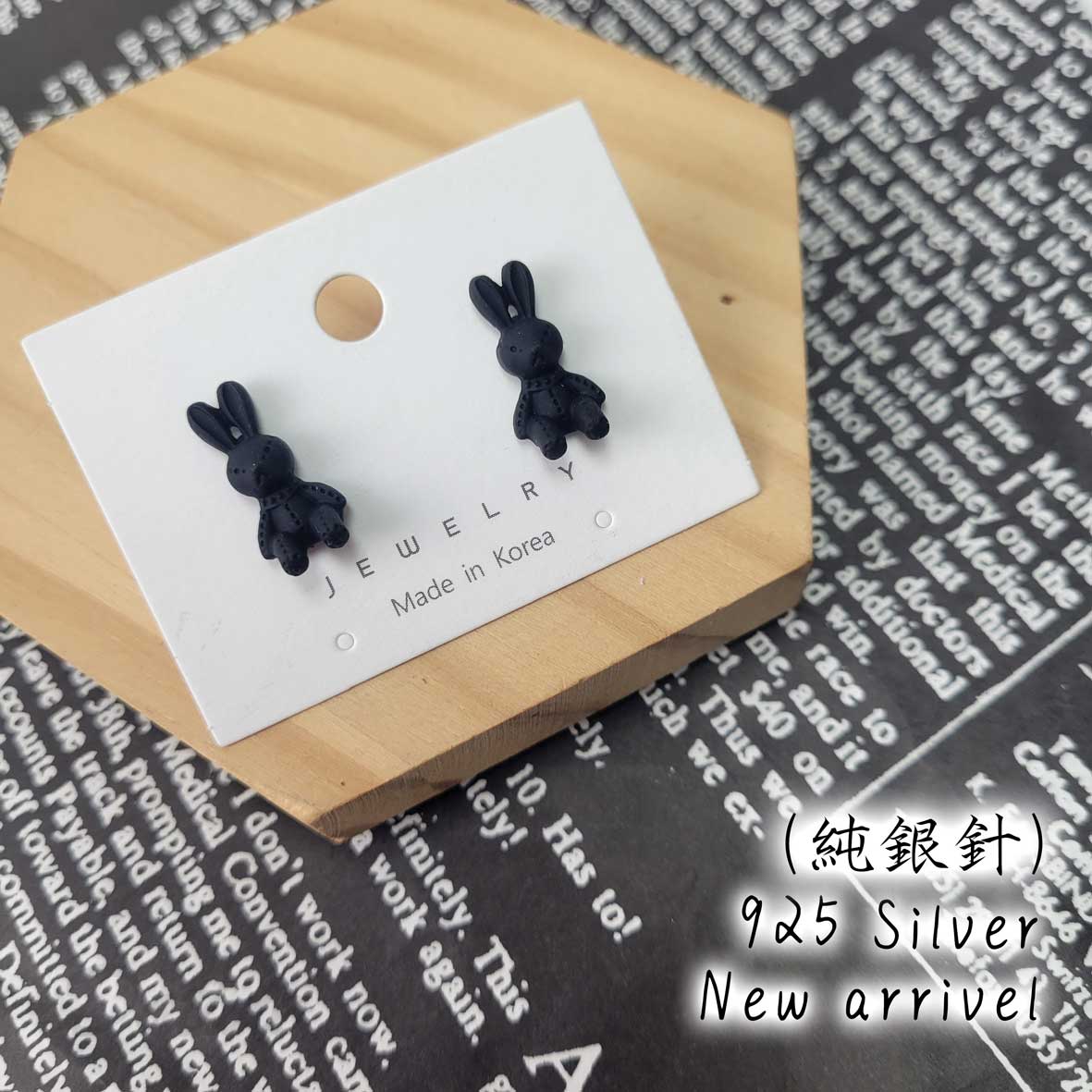 流行 可愛 黑色 兔兔 造型 立體 耳環