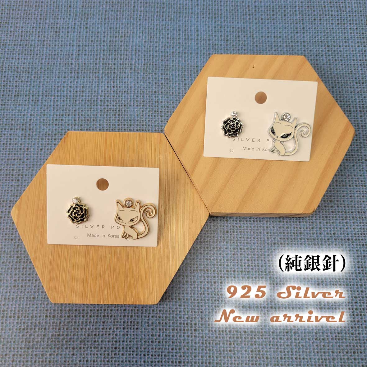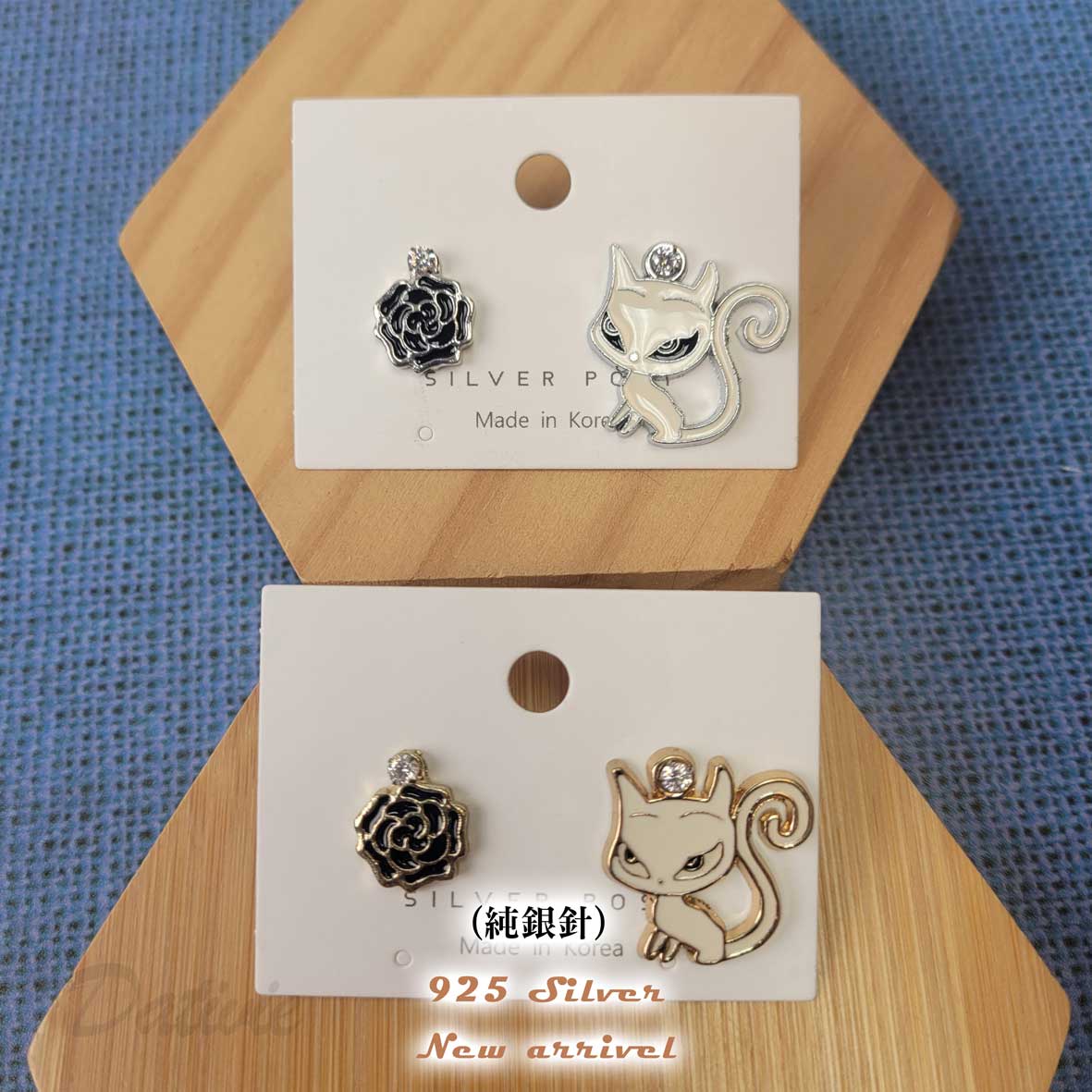 流行 可愛 玫瑰 貓咪 造型 兩色 耳環