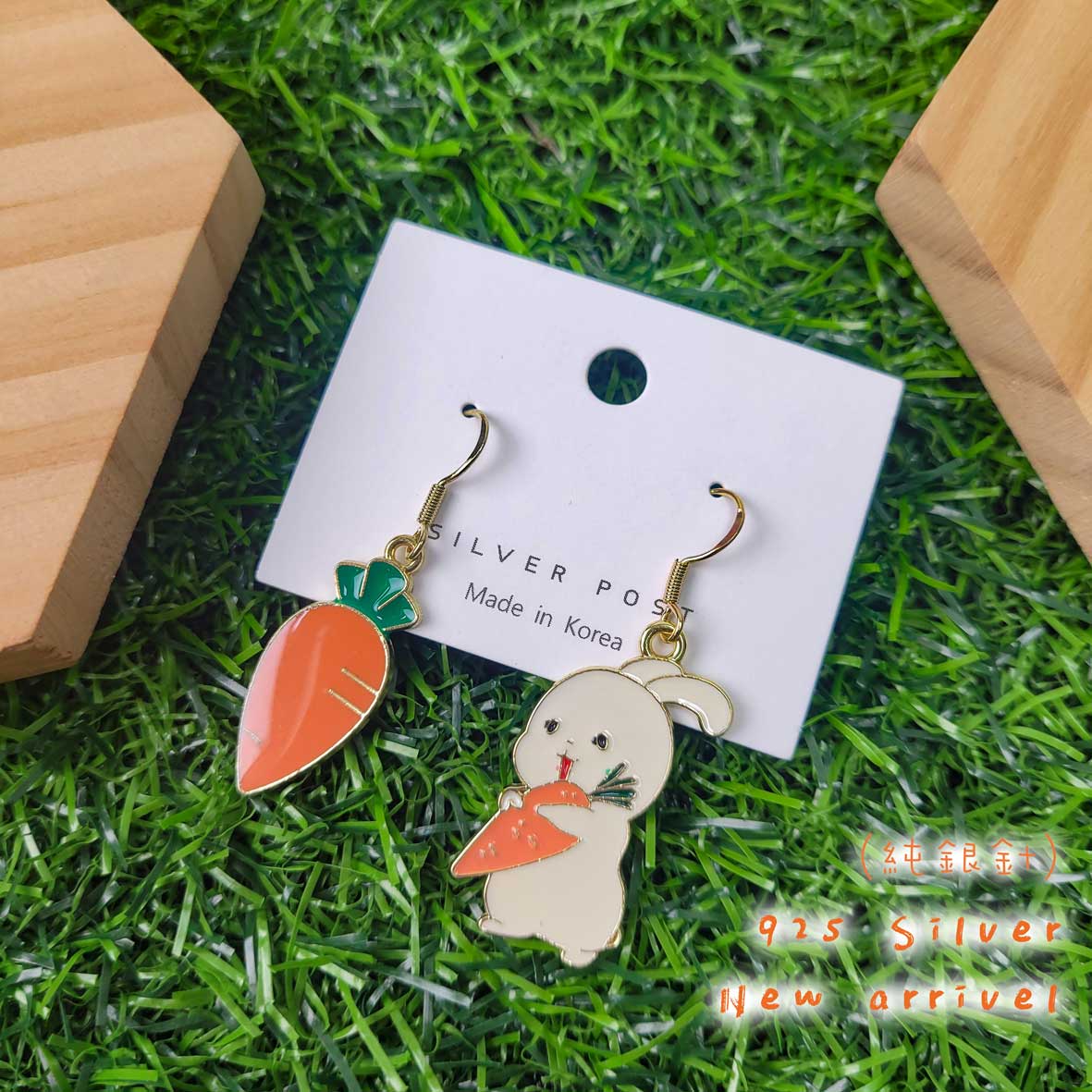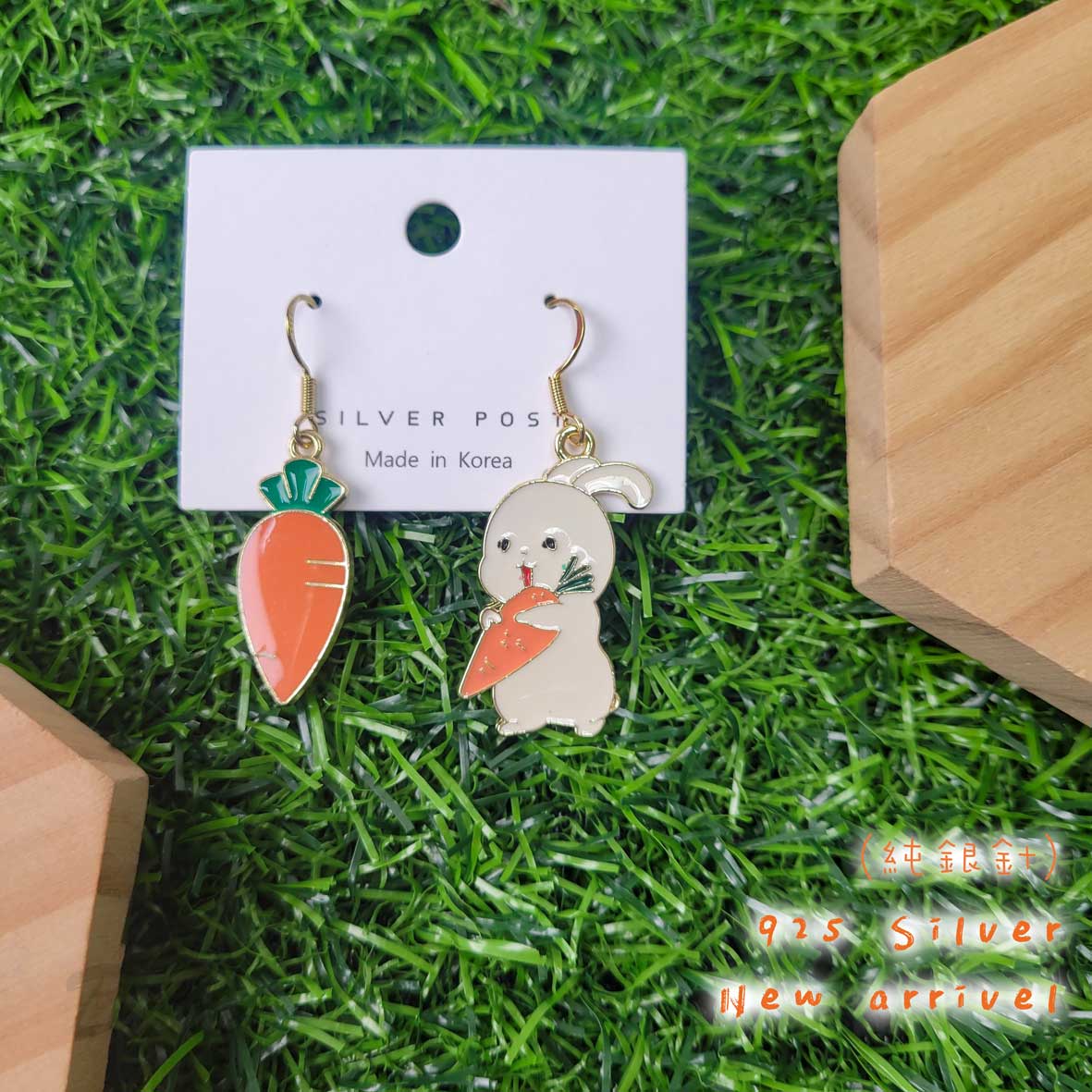 流行 可愛 兔兔 紅蘿蔔 造型 垂墜 耳環