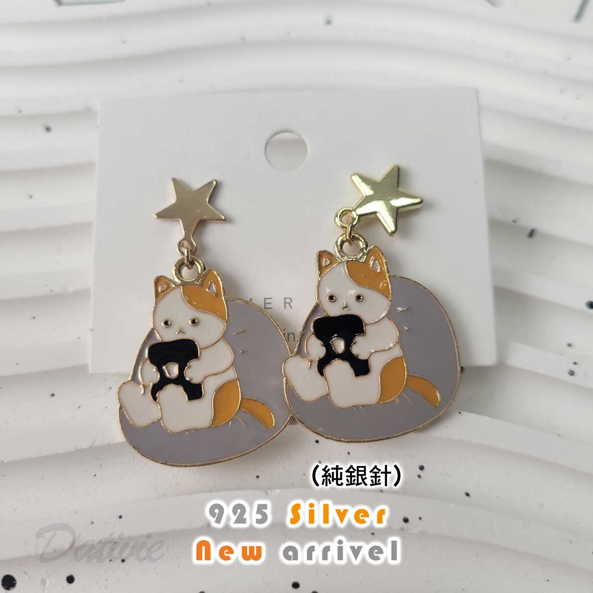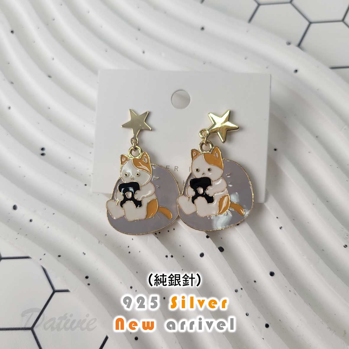 流行 可愛 貓咪 星星 造型 垂墜 耳環