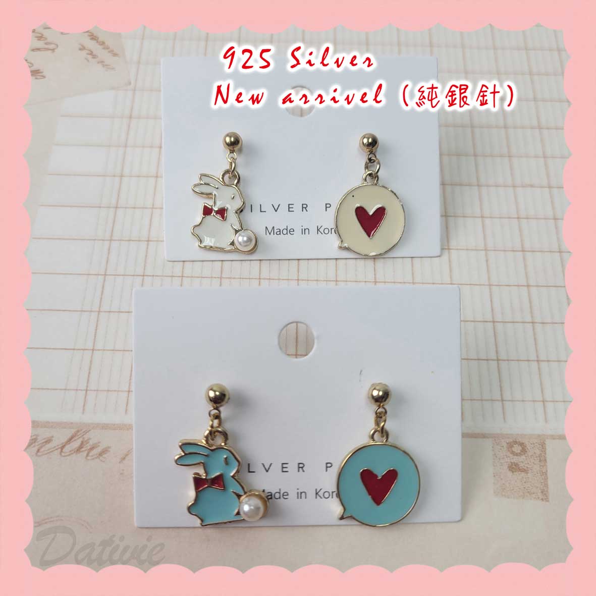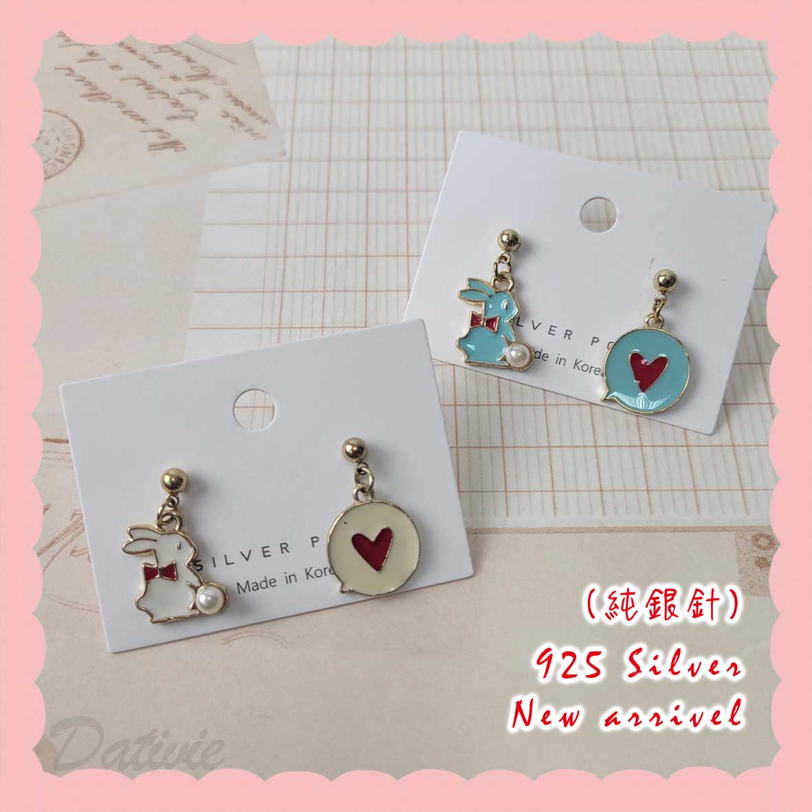 流行 可愛 兔子 愛心 造型 兩色 垂墜 耳環