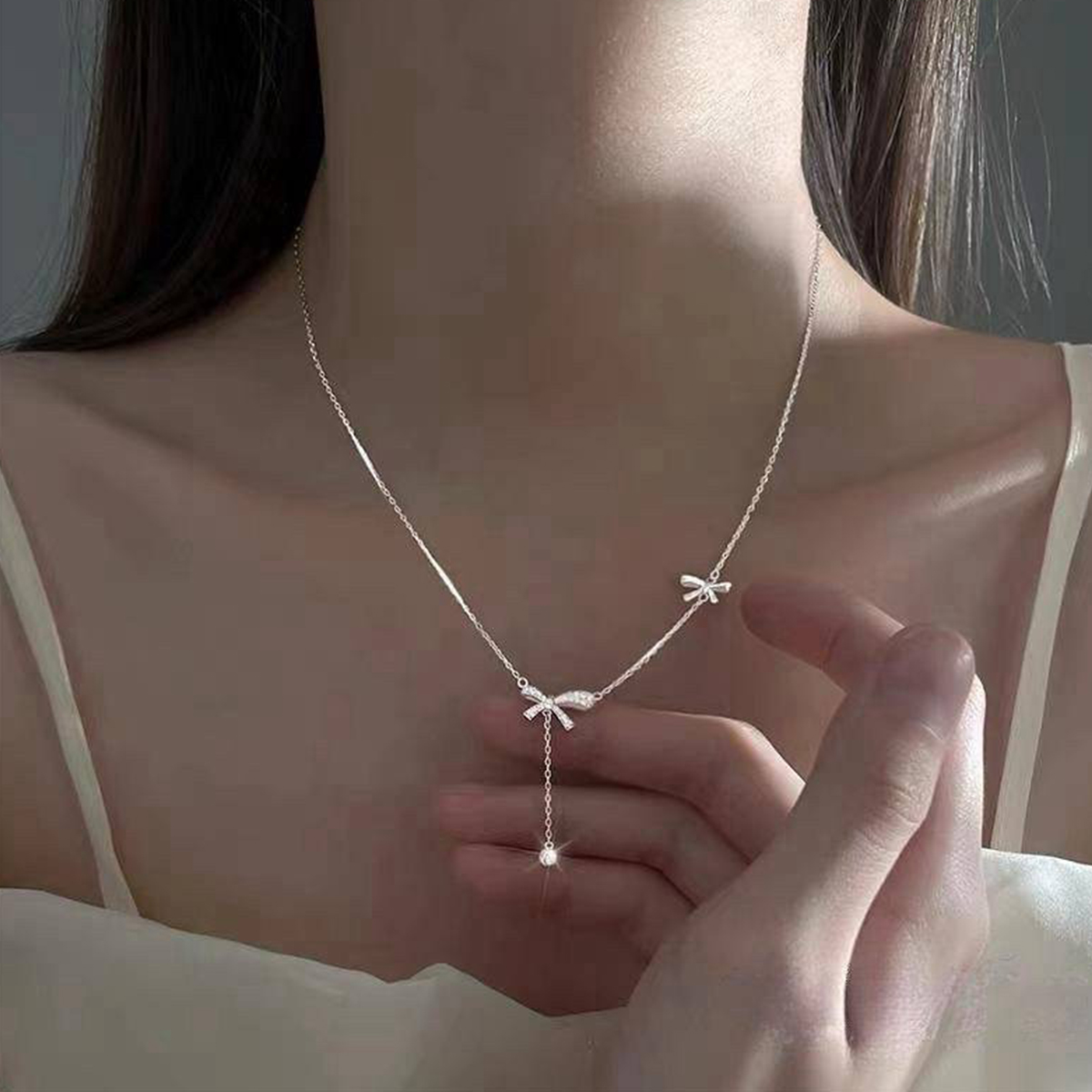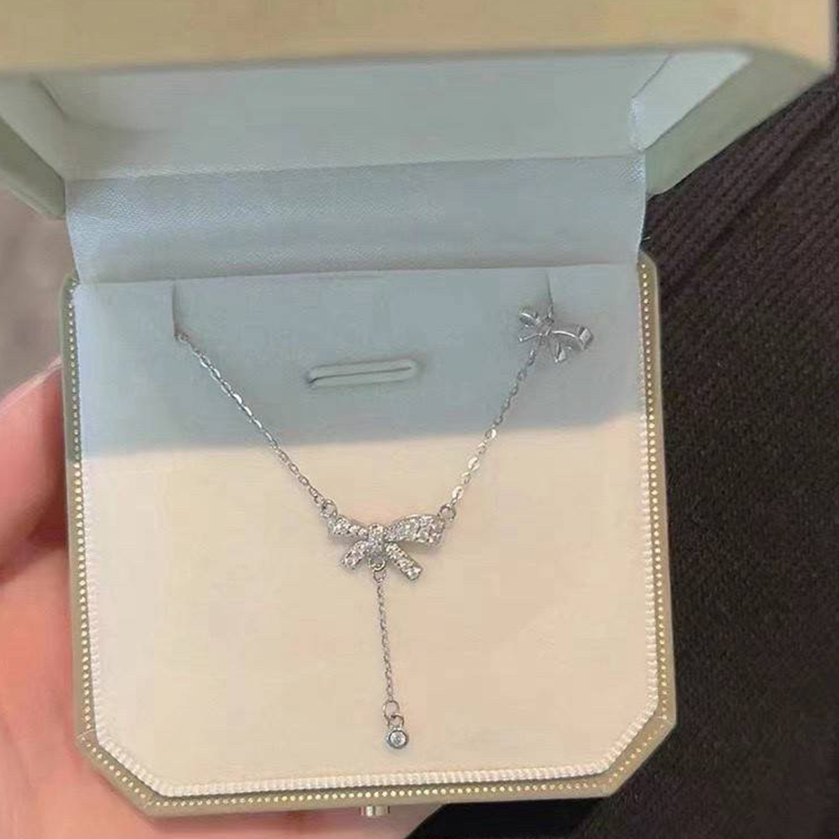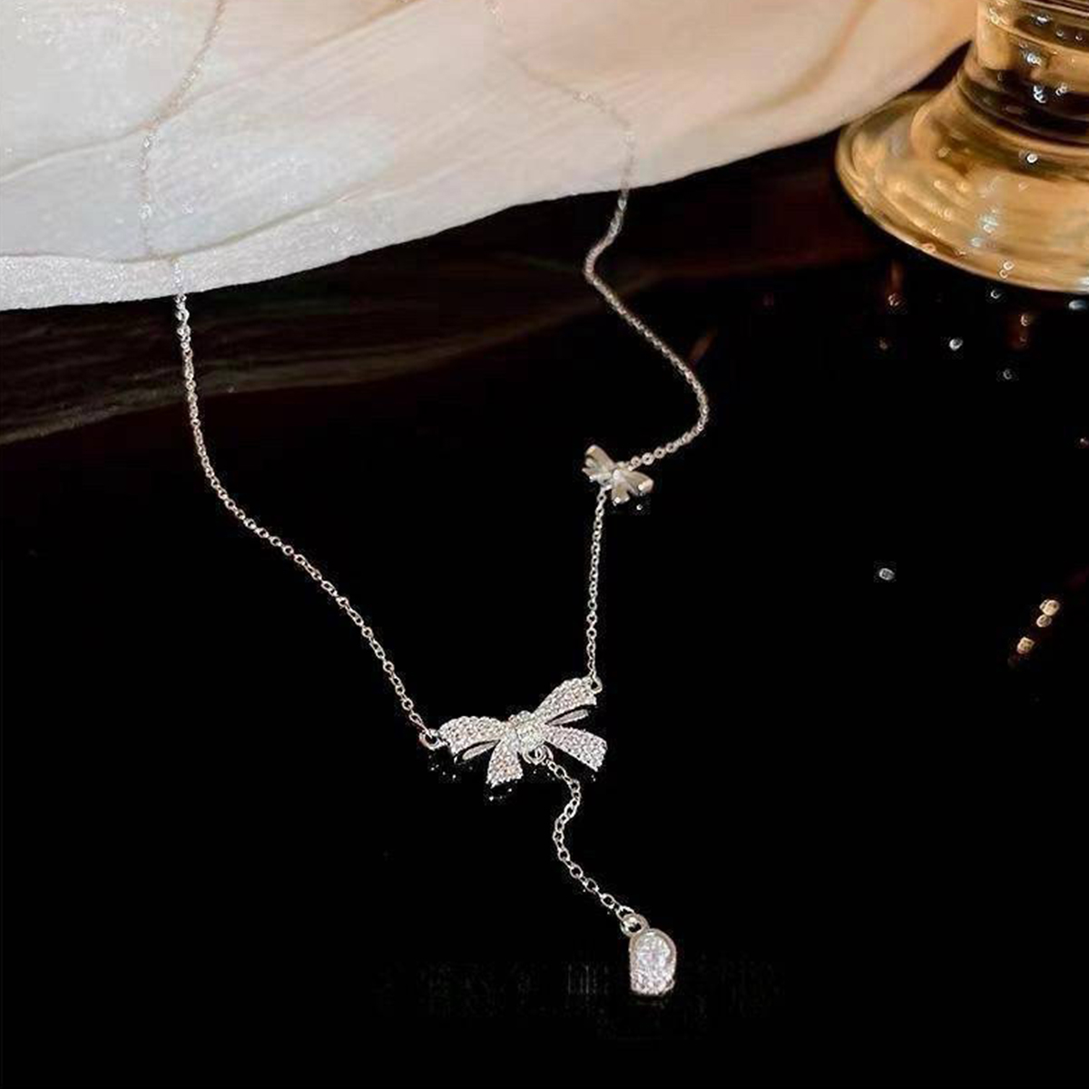 預購-泰國 全925純銀項鍊 蝴蝶結鋯石流蘇項鍊 【款式】銀色 【材質】925純銀 【尺寸】戴起約20cm+5cm延長(後面能自行加延長鏈加長) 【產地】泰國 ▲▲預購商品須知 *請勿跟現貨商品一起下標,麻煩分開下單。 *結帳時請勿選擇超商取貨付款。 *預購商品需3~4週左右的工作天,可以等待再下單,謝謝。