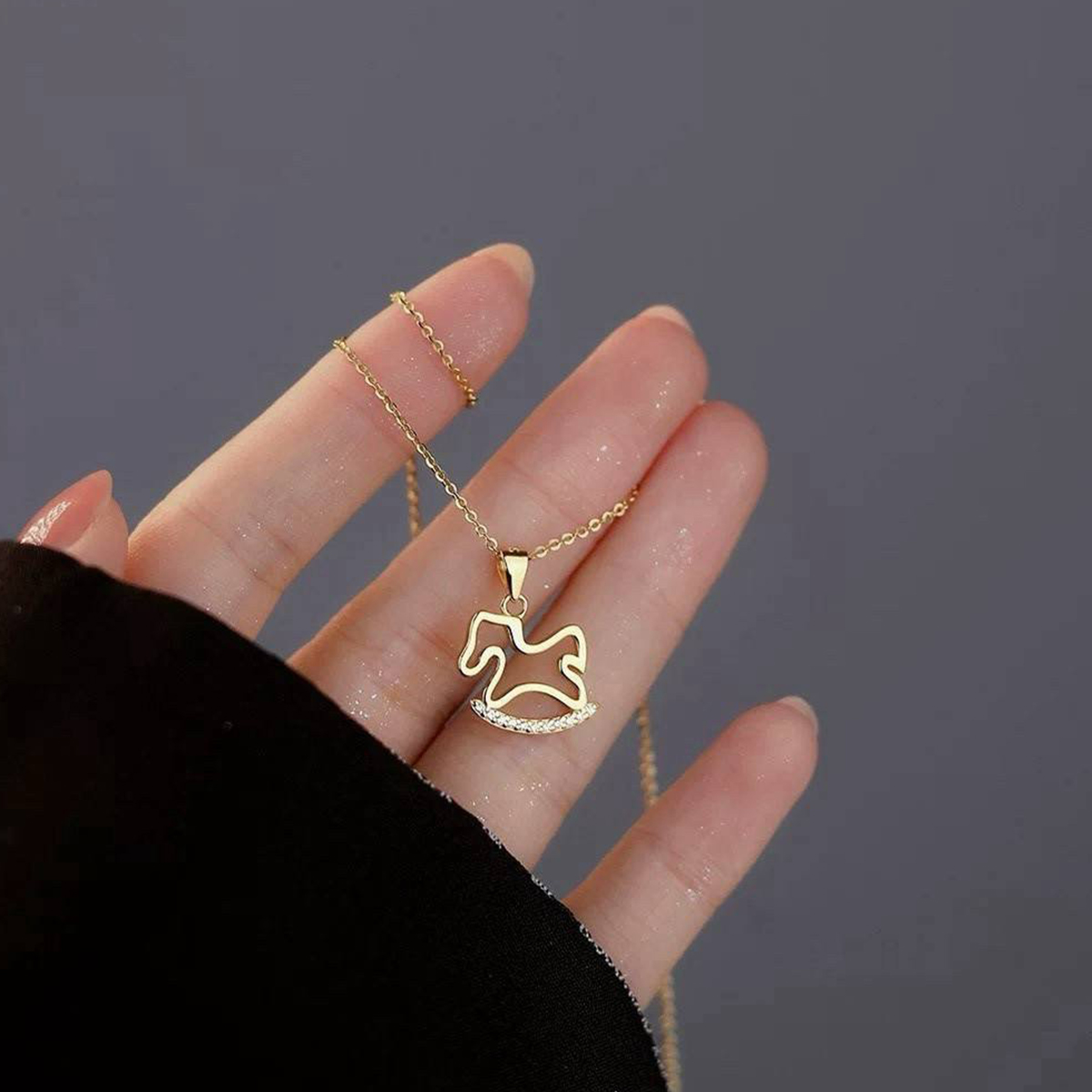 預購-泰國 全925純銀項鍊 童趣小木馬項鍊 【款式】銀色 / 金色 【材質】925純銀 【尺寸】戴起約20cm+2.5cm延長(後面能自行加延長鏈加長) 【產地】泰國 ▲▲預購商品須知 *請勿跟現貨商品一起下標,麻煩分開下單。 *結帳時請勿選擇超商取貨付款。 *預購商品需3~4週左右的工作天,可以等待再下單,謝謝。