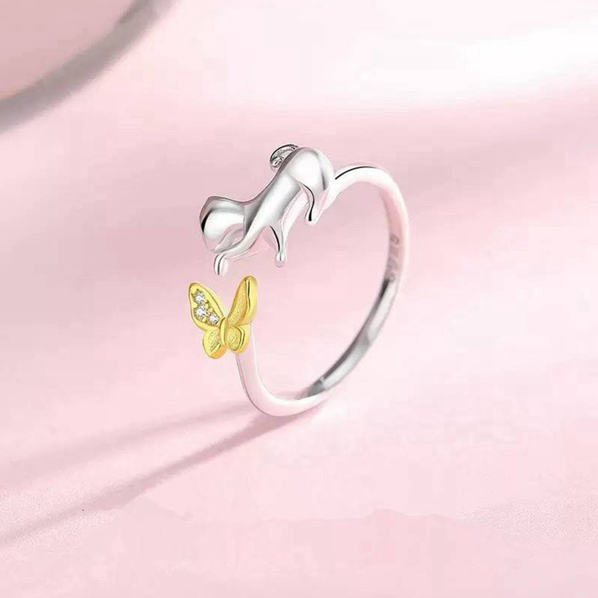 預購-泰國 全925純銀戒指 可愛貓咪捕蝶戒指 【材質】925純銀 【尺寸】可調式戒指,不限制指圍 【產地】泰國 ▲▲預購商品須知 *請勿跟現貨商品一起下標,麻煩分開下單。 *結帳時請勿選擇超商取貨付款。 *預購商品需3~4週左右的工作天,可以等待再下單,謝謝。