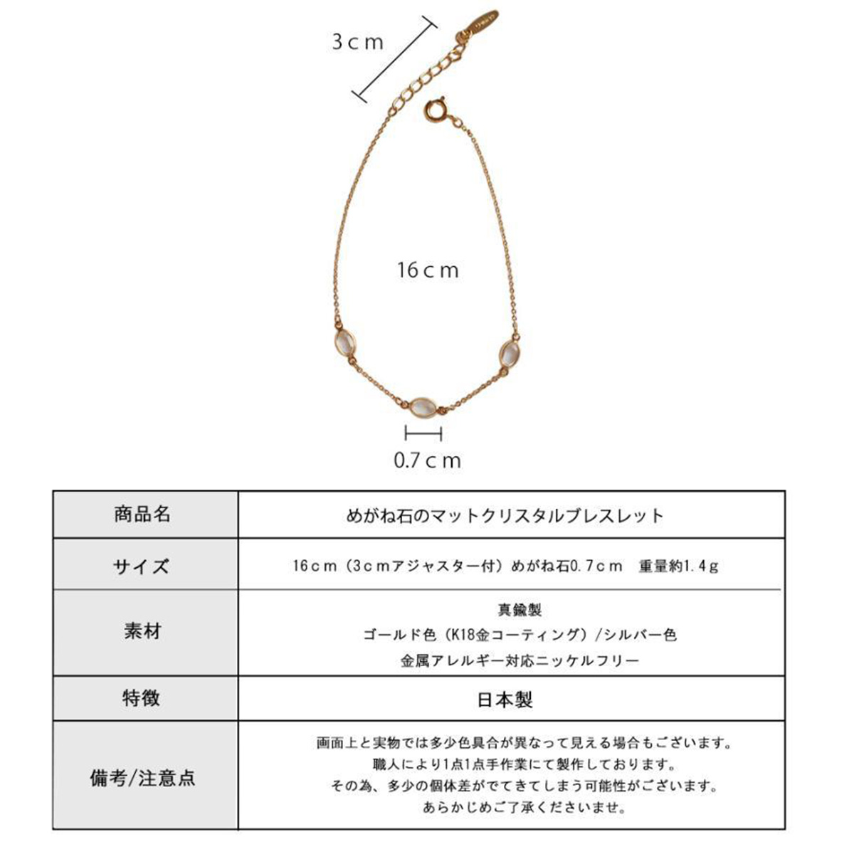 預購-日本製 Melody Accessory 清新眼鏡石手鍊 【款式】金色(K18鍍金)/ 銀色 【尺寸】約16cm+3cm調節、眼鏡石:0.7cm 【材質】黃銅 【產地】日本 ▲▲預購商品須知 *請勿跟現貨商品一起下標,麻煩分開下單。 *結帳時請勿選擇超商取貨付款。 *預購商品需3~4週左右的工作天,可以等待再下單,謝謝。