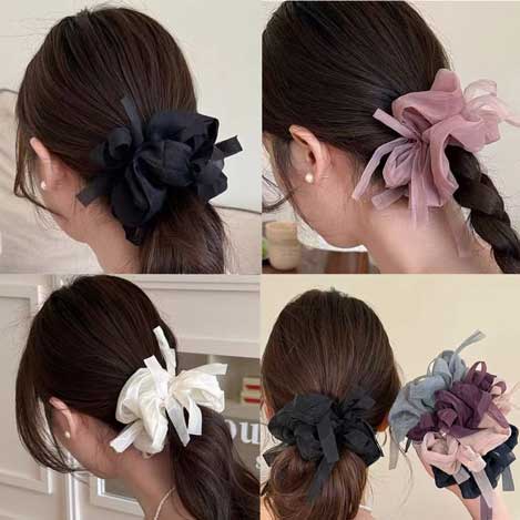 韓版 霧面 薄紗 蝴蝶結 綁帶 髮圈