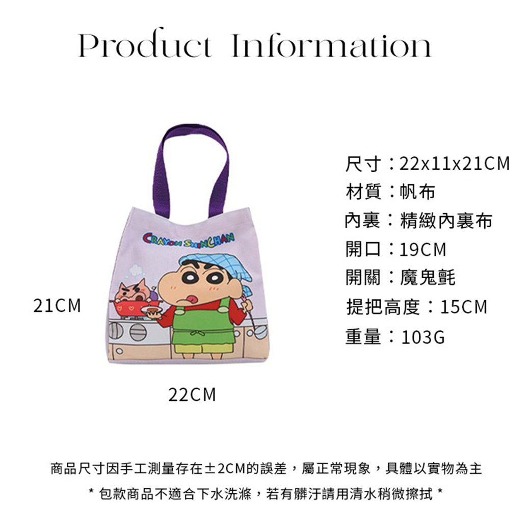 方形手提袋-蠟筆小新 CRAYON SHINCHAN 正版授權 【款式】素色背景(紫色/淺藍/藍色/黃色/綠色);斜紋背景(藍色/紫色/粉色/黃色/藍綠) 【材質】帆布 【尺寸】11×22×21cm 【產地】中國(台灣監製)