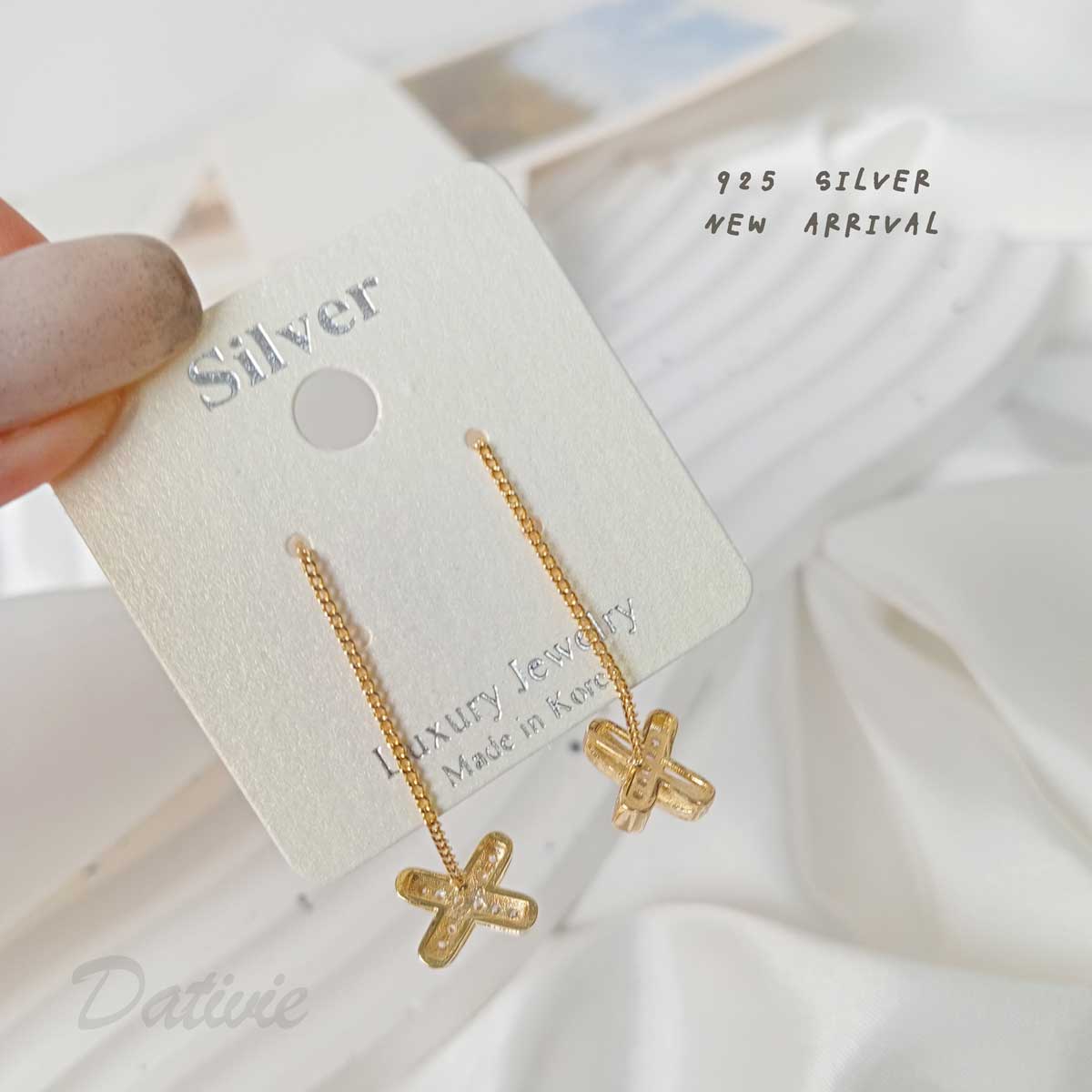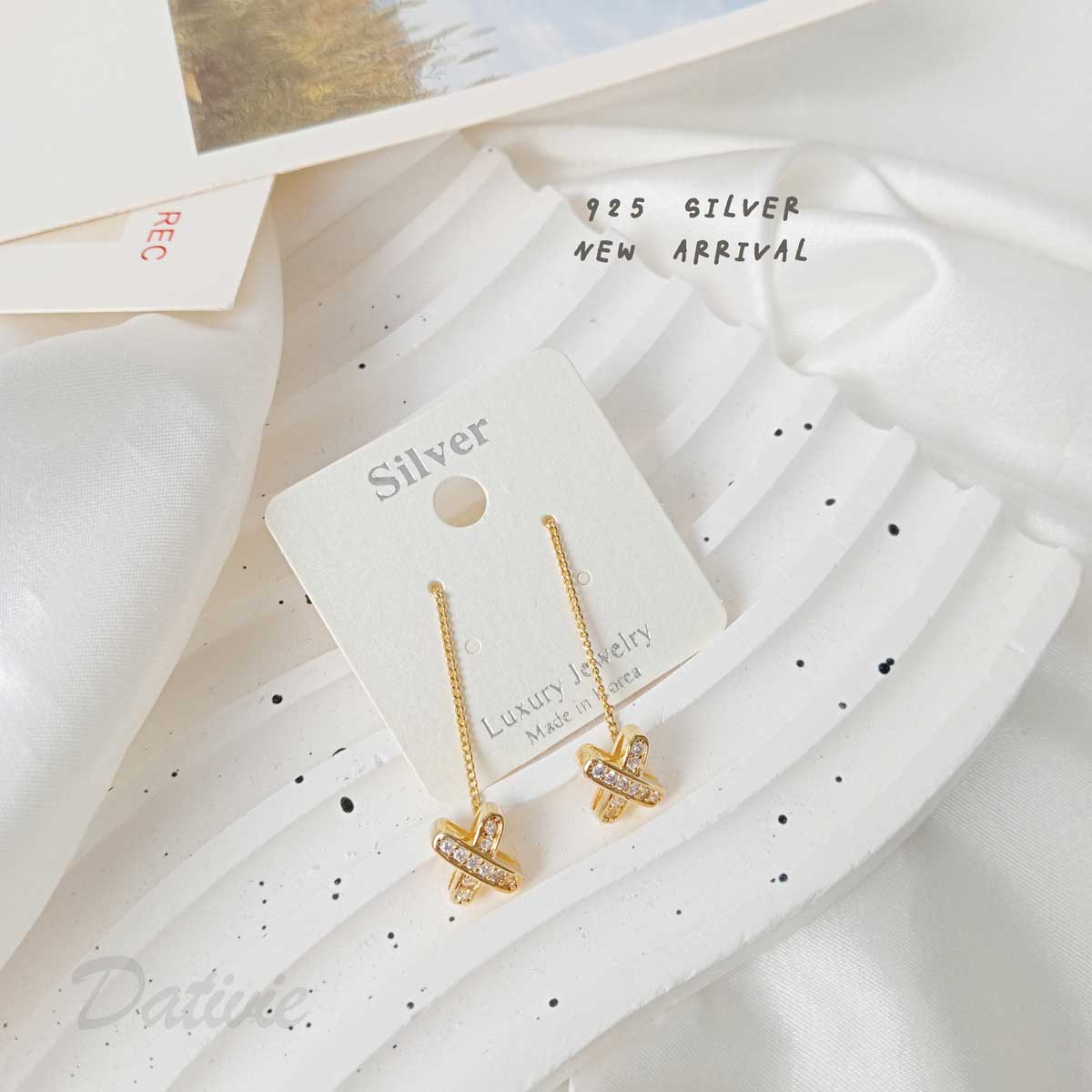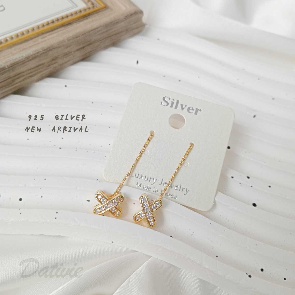 流行 鑲鑽 交叉 造型 垂墜 耳環