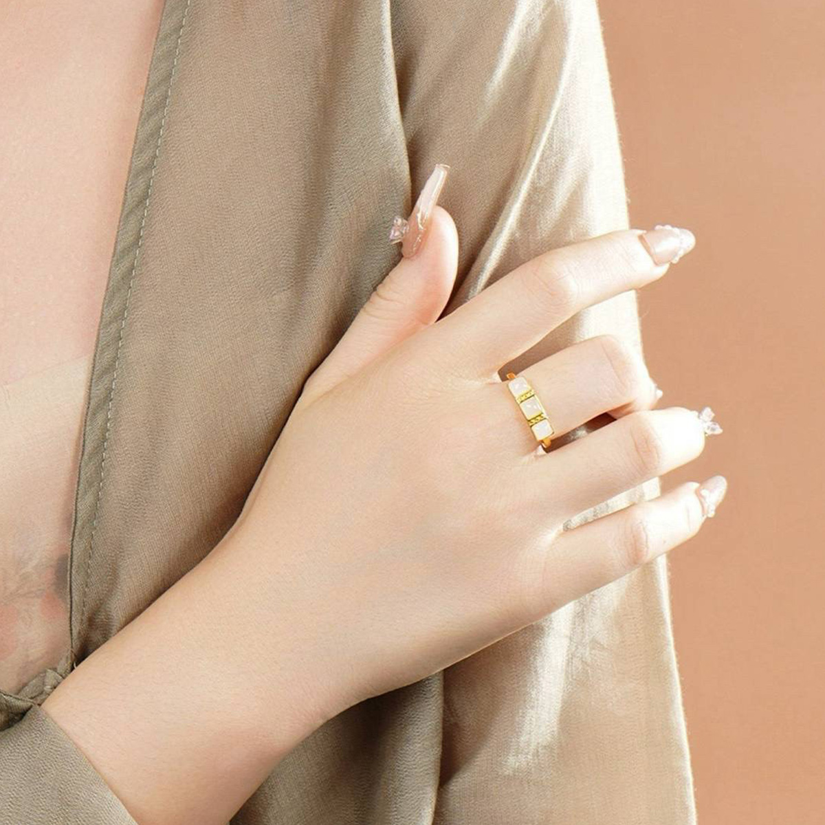 預購-泰國 全925純銀戒指 典雅白玉方糖戒指 【款式】金色 【材質】925純銀+白玉 【尺寸】可調式戒指,不限制指圍 【產地】泰國 ▲▲預購商品須知 *請勿跟現貨商品一起下標,麻煩分開下單。 *結帳時請勿選擇超商取貨付款。 *預購商品需3~4週左右的工作天,可以等待再下單,謝謝。
