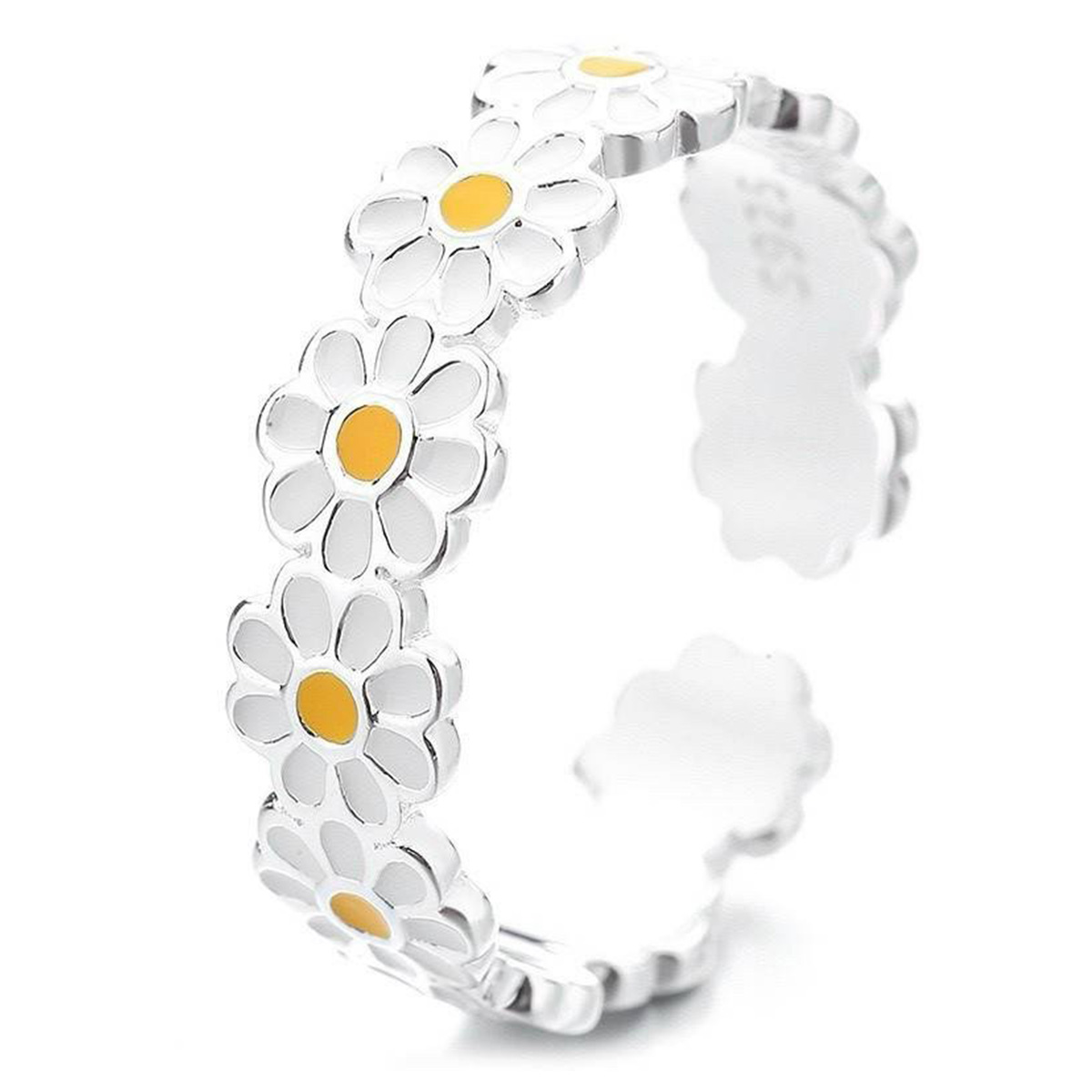 預購-泰國 全925純銀戒指 清新小雛菊戒指 【款式】銀色 【材質】925純銀 【尺寸】可調式戒指,不限制指圍 【產地】泰國 ▲▲預購商品須知 *請勿跟現貨商品一起下標,麻煩分開下單。 *結帳時請勿選擇超商取貨付款。 *預購商品需3~4週左右的工作天,可以等待再下單,謝謝。