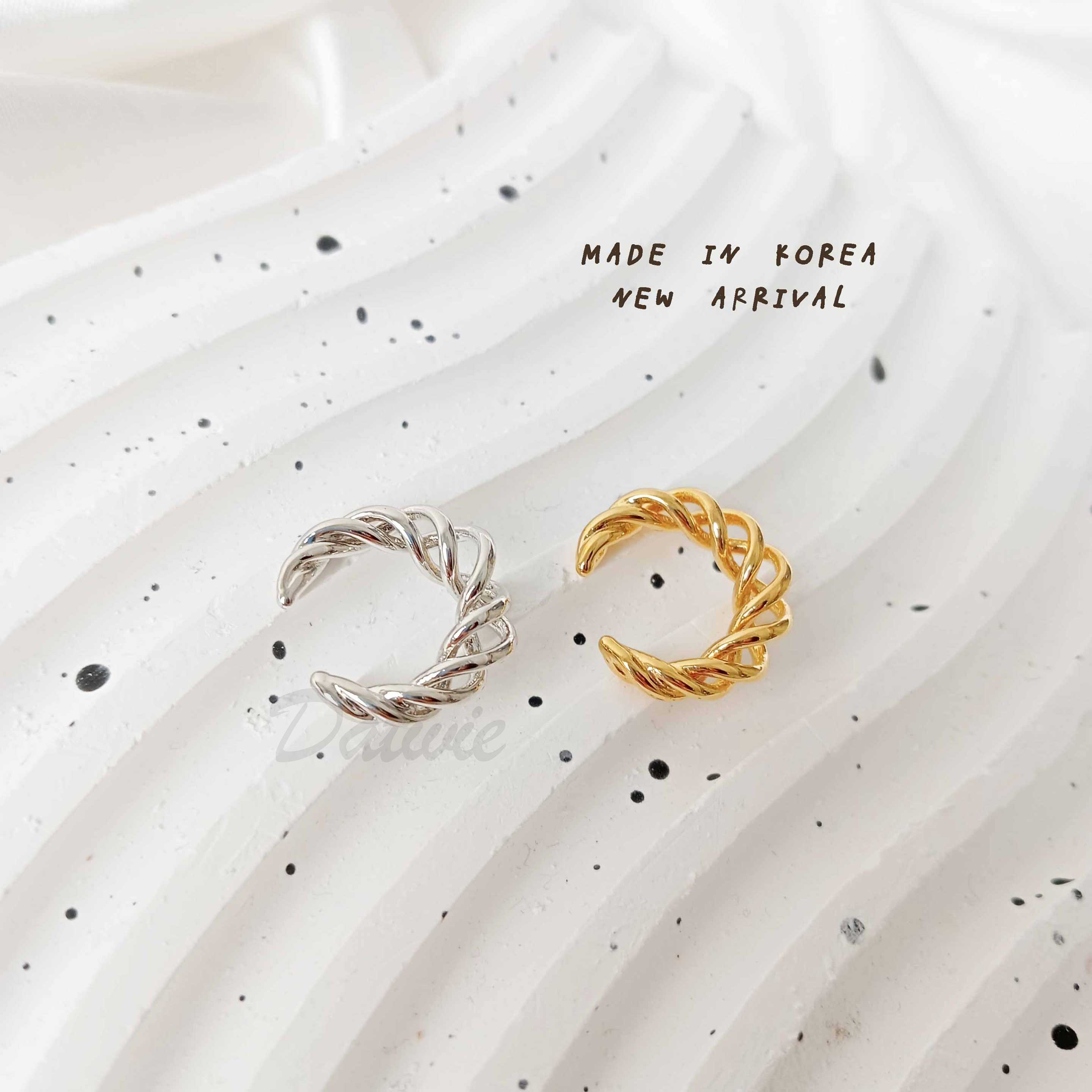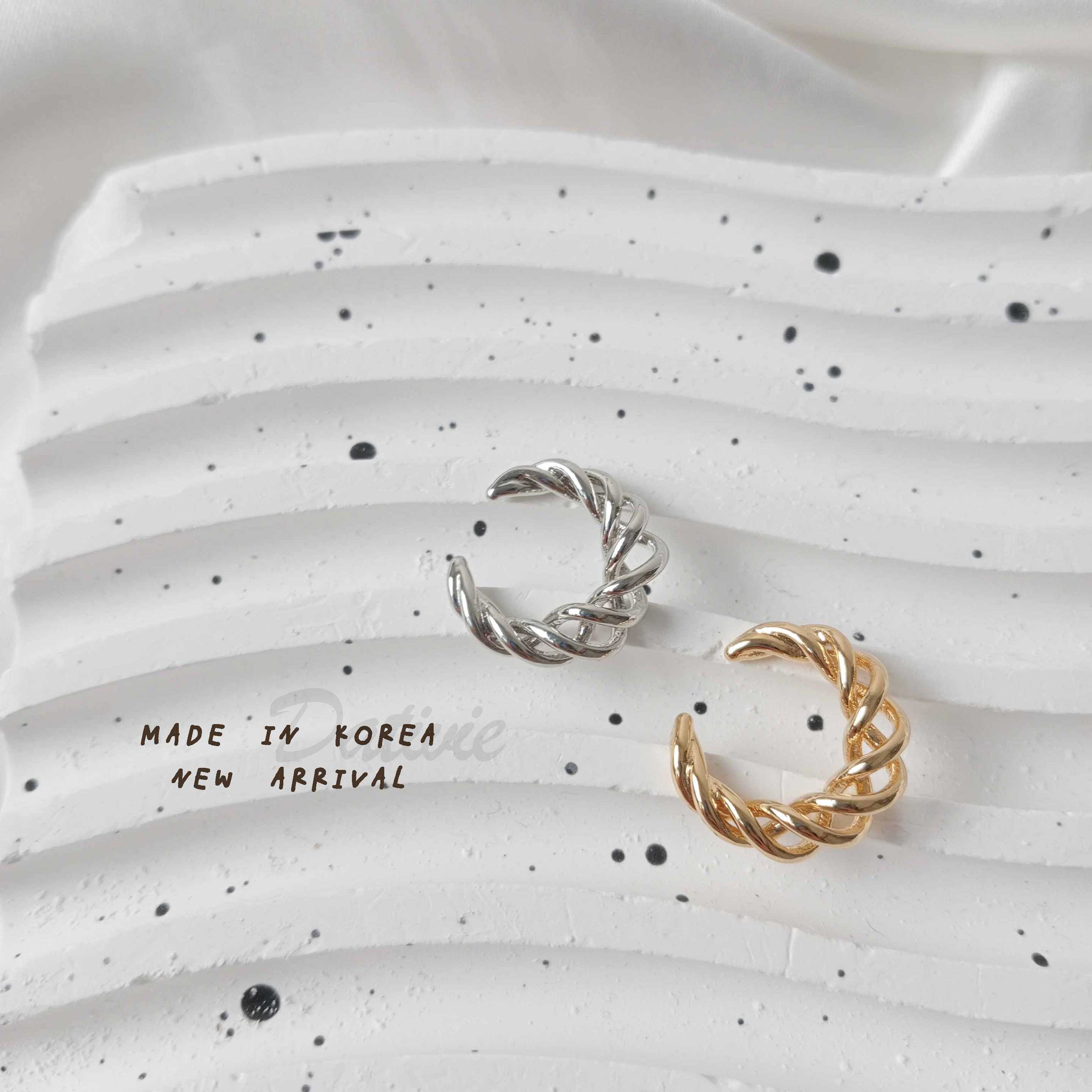 韓國 兩色 麻花 纏繞 造型 可調式 耳夾