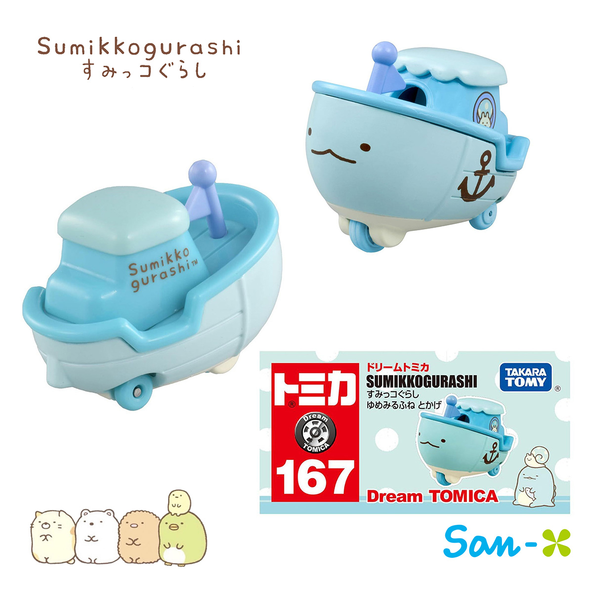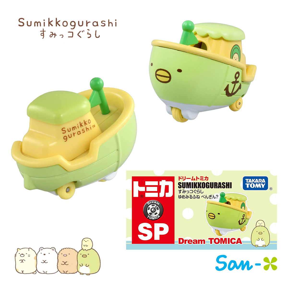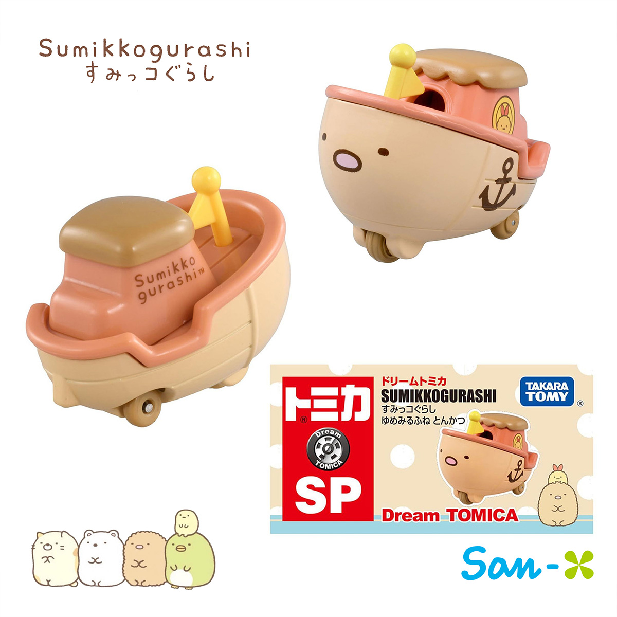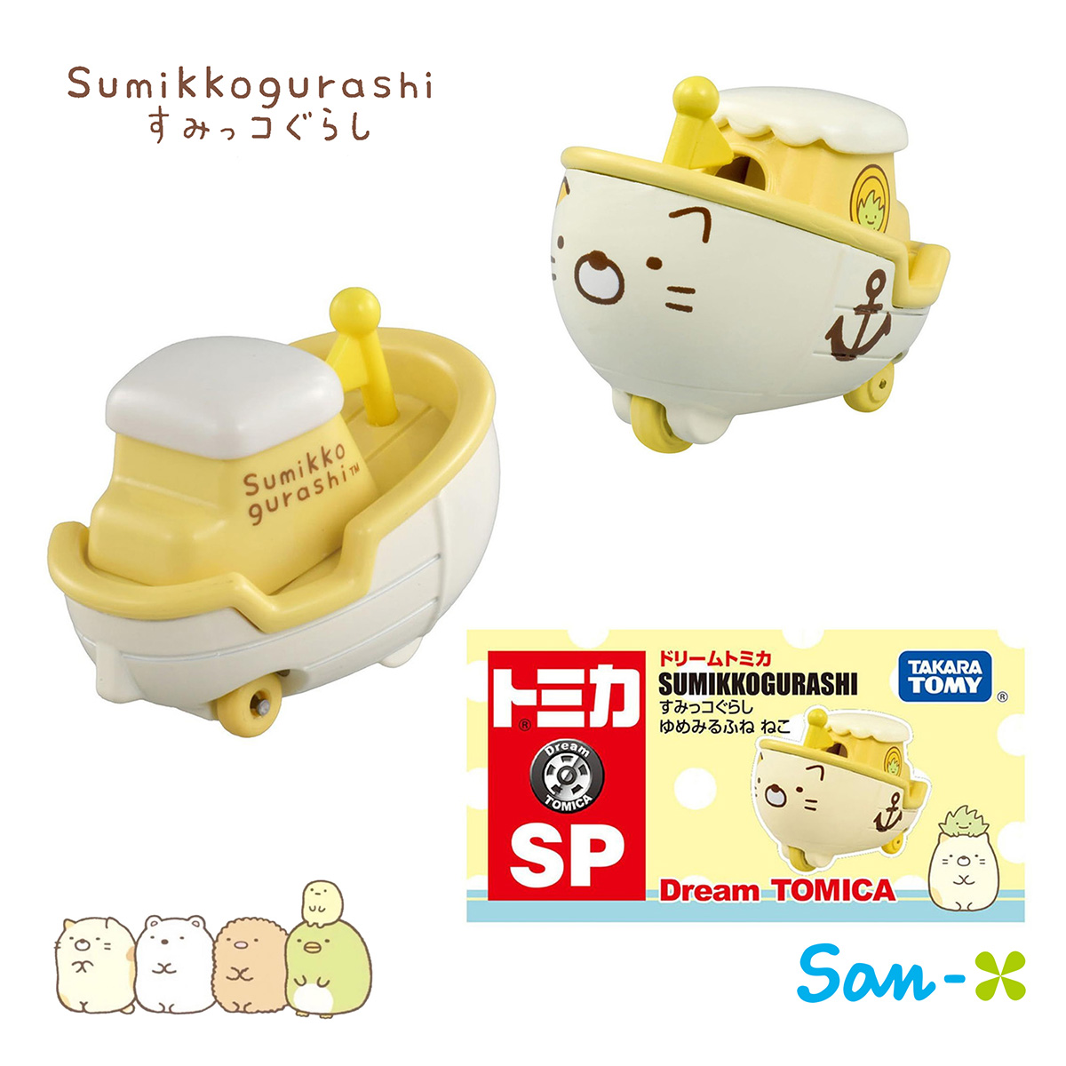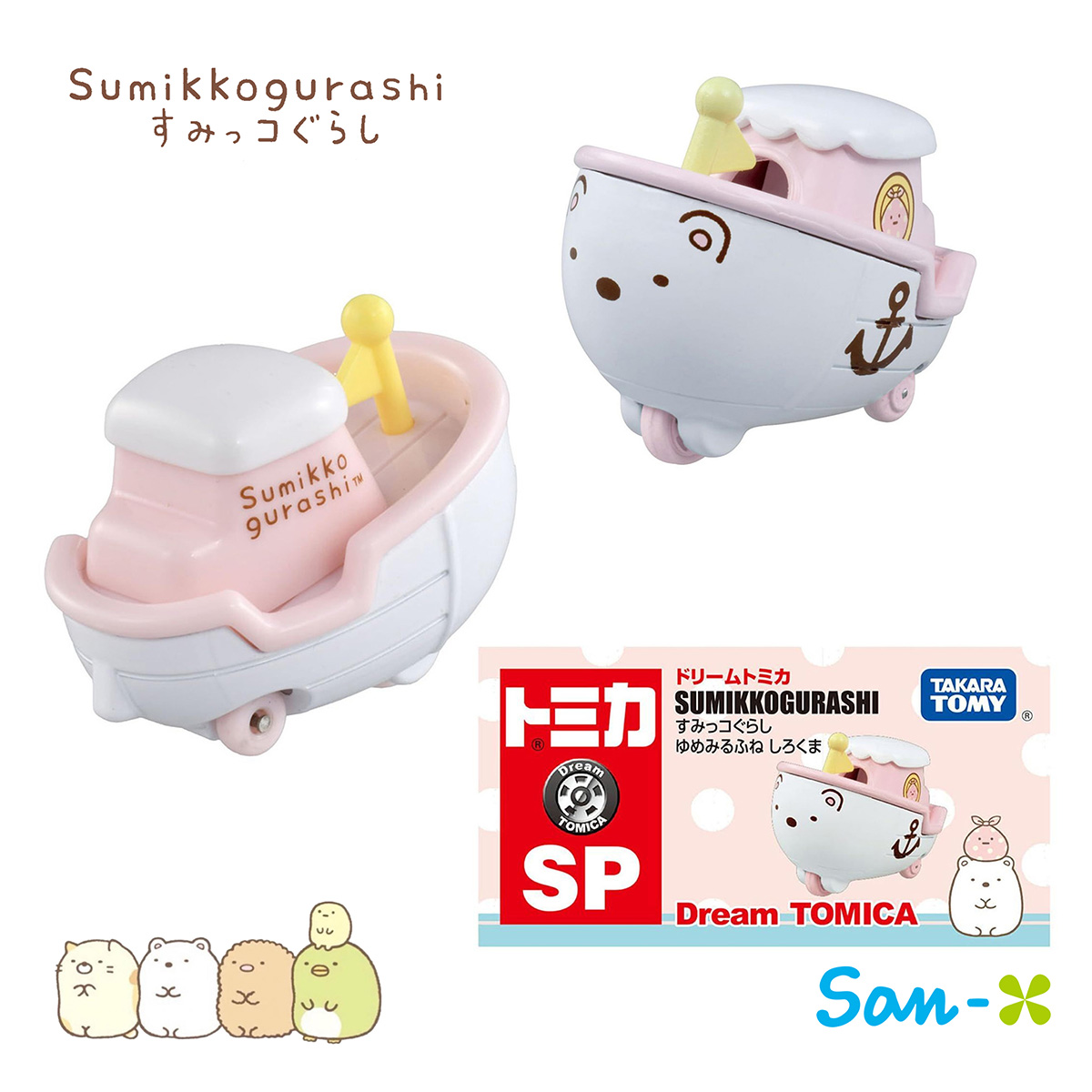 夢想船 多美小車車-角落生物 sumikko gurashi san-x TOMICA 日本進口正版授權 【款式】白熊/豬排/貓咪/蜥蜴/企鵝 【包裝尺寸】約8x4x4cm 【材質】金屬亞鉛合金、塑膠PC 【產地】越南(日本監製)
