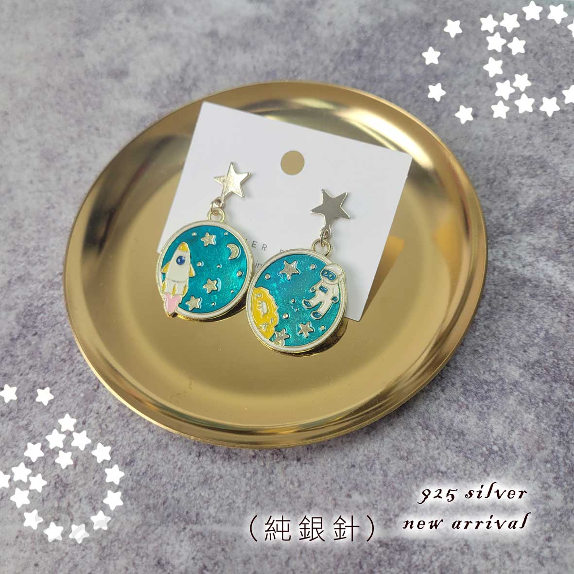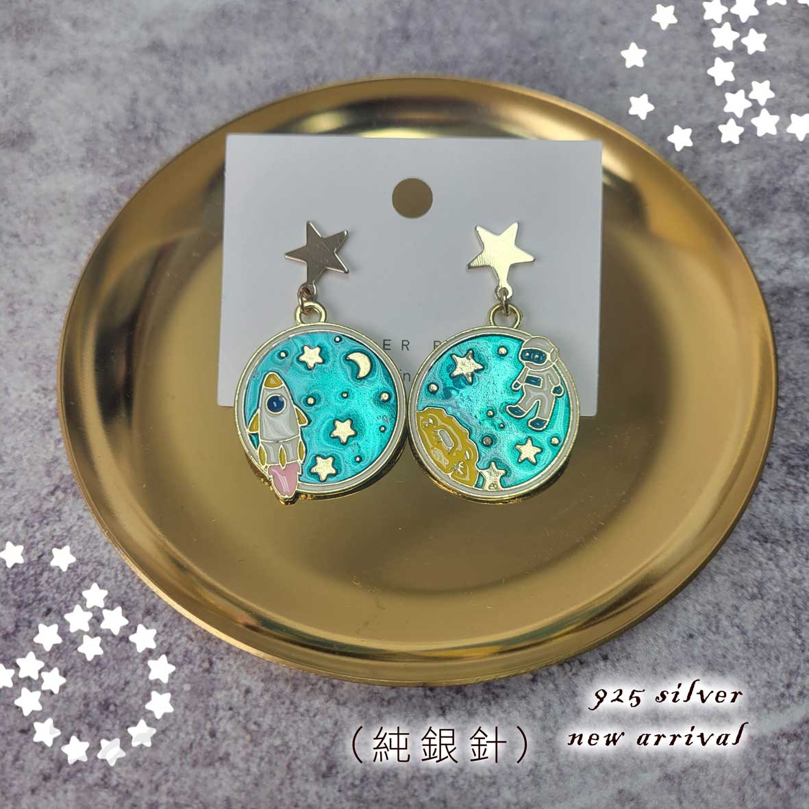 流行 可愛 月球 太空 星星 造型 垂墜 耳環