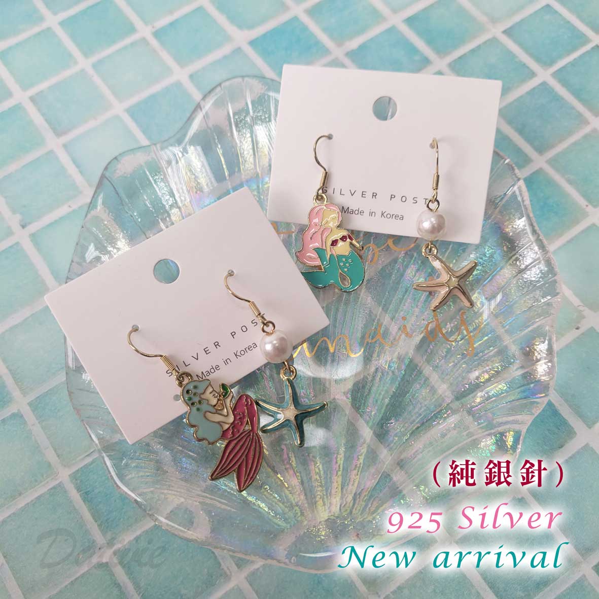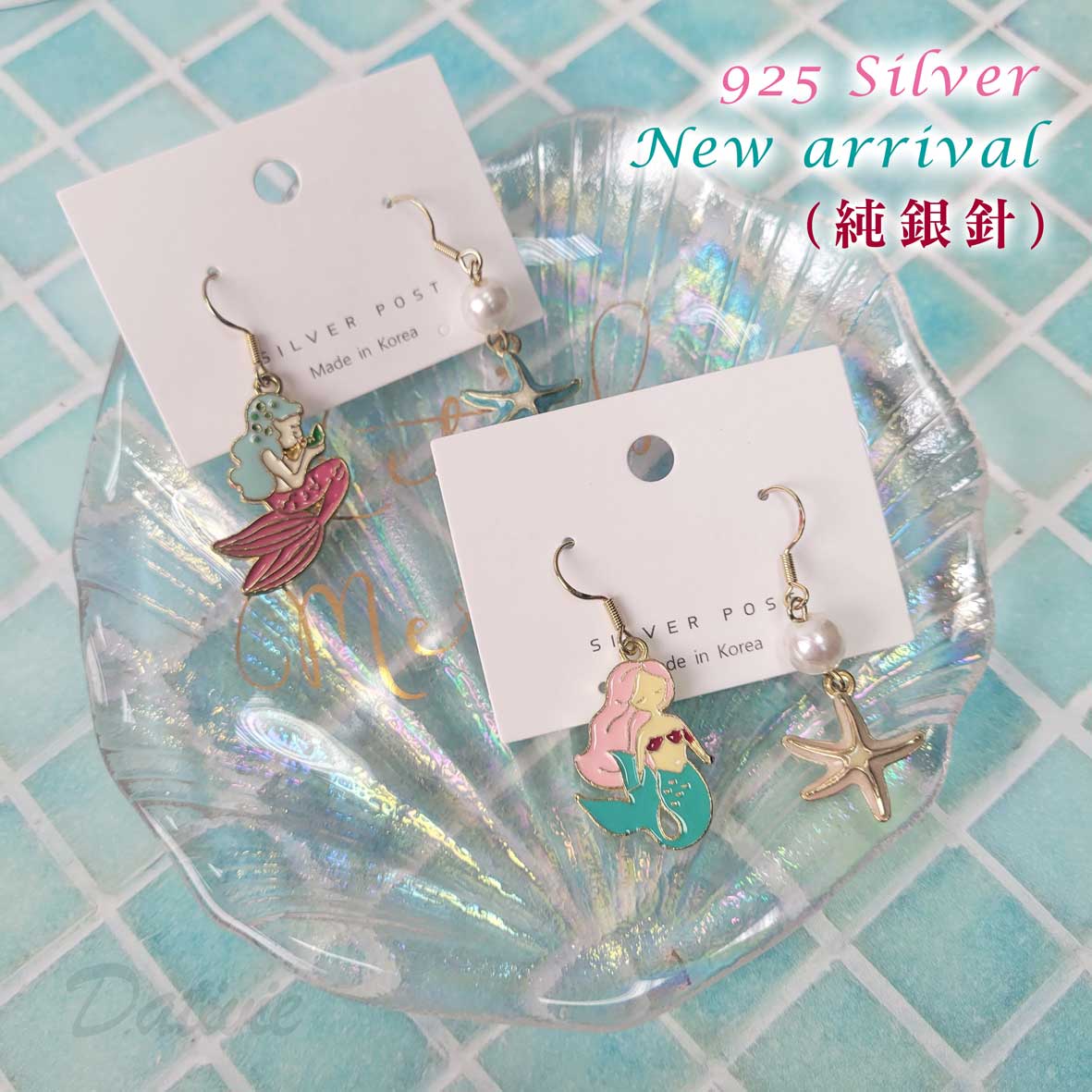 流行 可愛 人魚 海星 珍珠 造型 垂墜 耳環