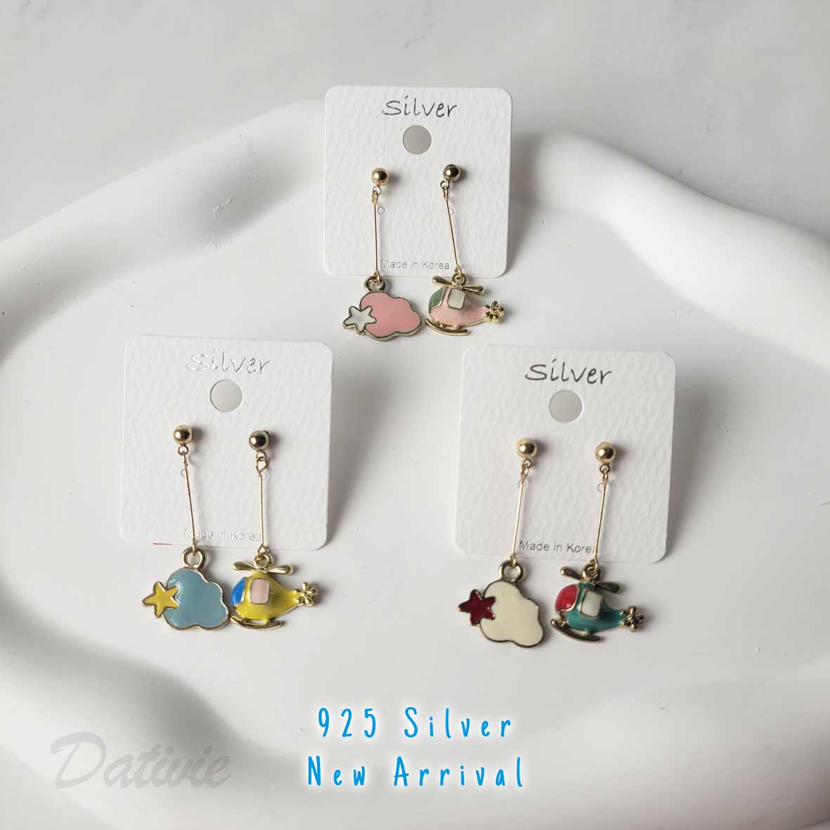 流行 可愛 直升機 雲朵 造型 垂墜 耳環