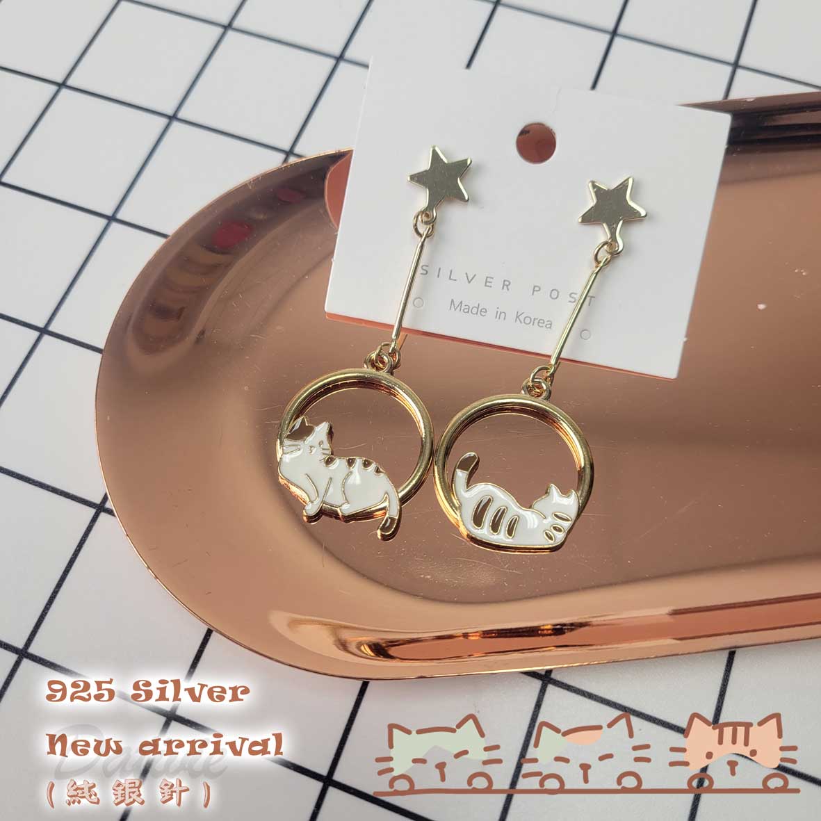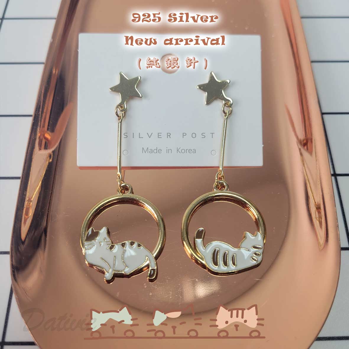 流行 可愛 貓咪 造型 星星 垂墜 耳環