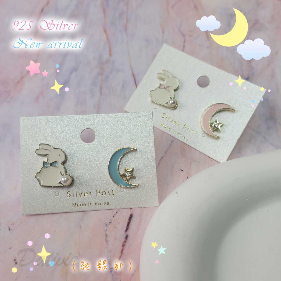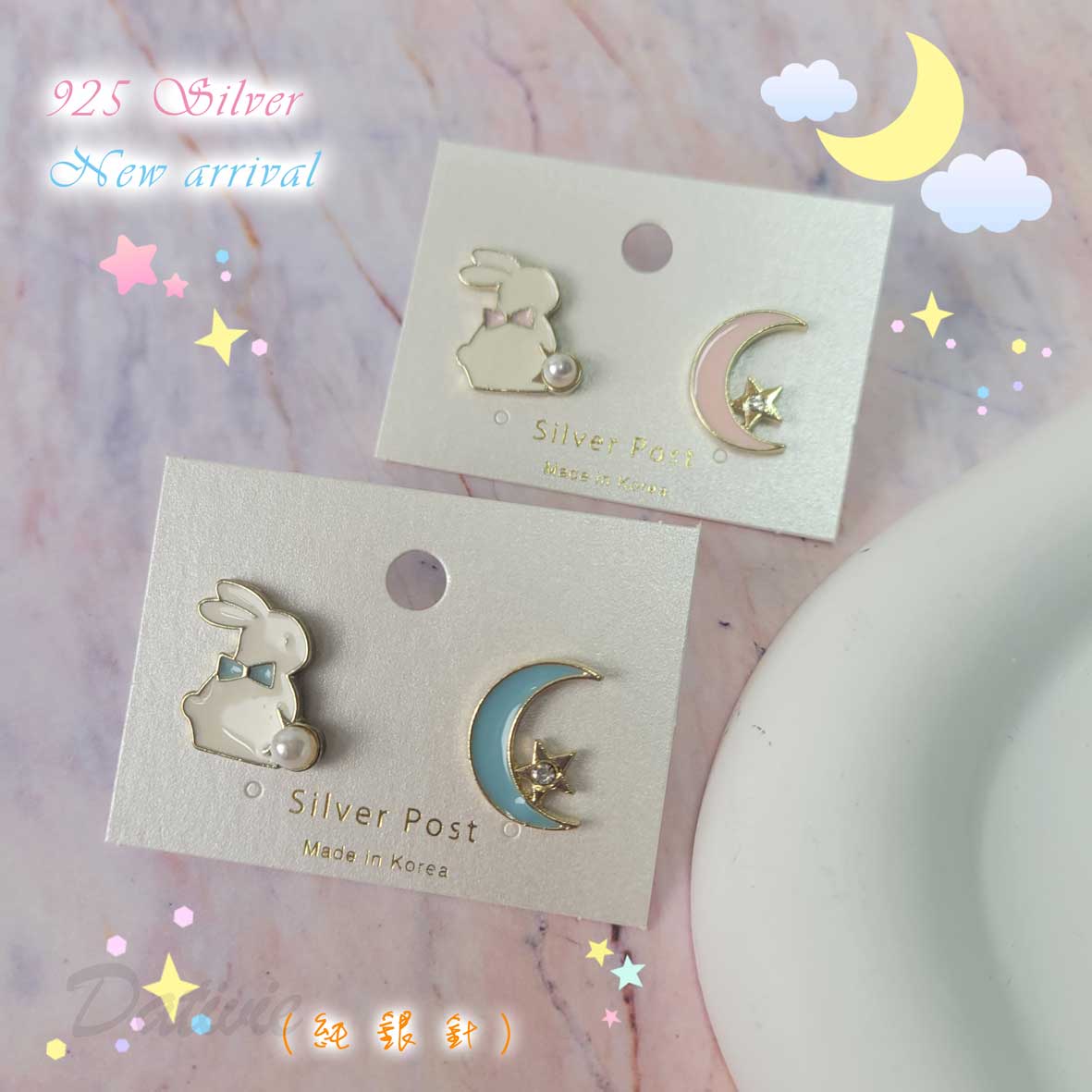 流行 可愛 兔子 月亮 星星 珍珠 造型 耳環