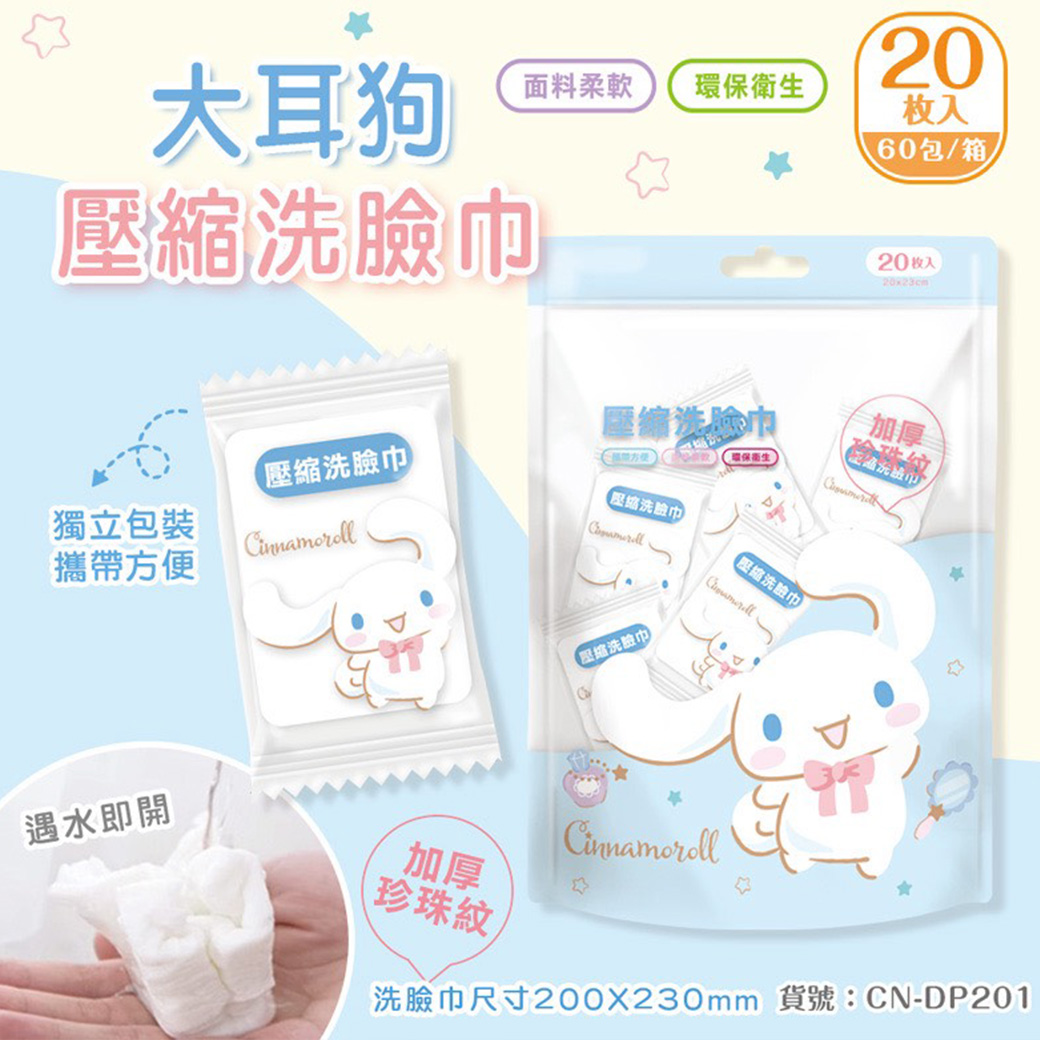 壓縮洗臉巾20入-大耳狗 人魚漢頓 三麗鷗 SANRIO 正版授權