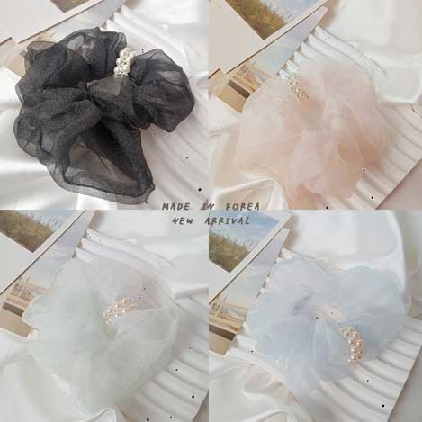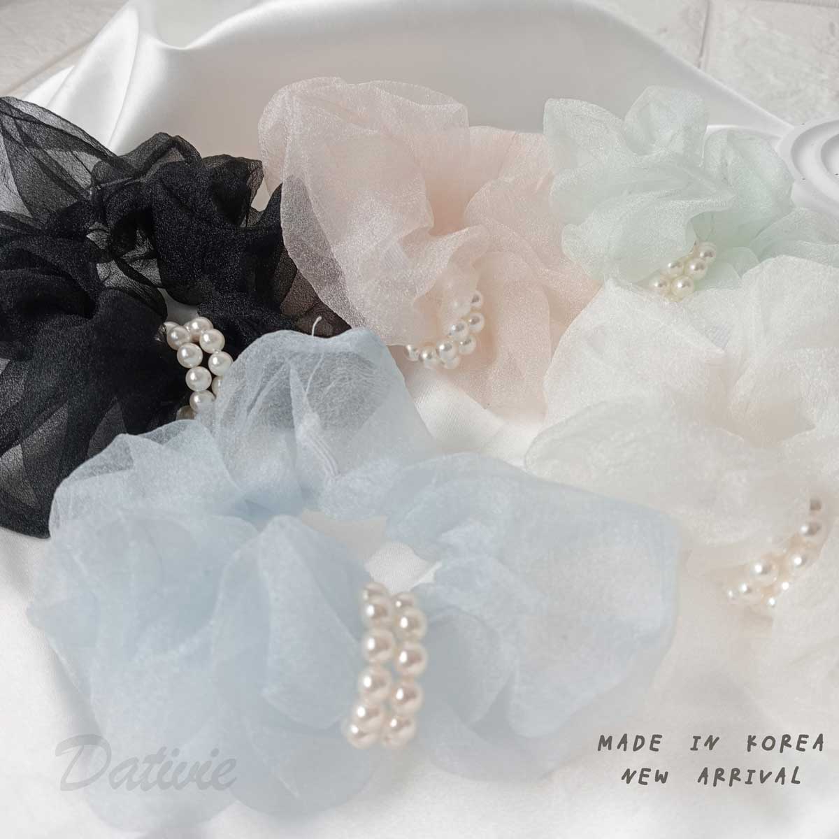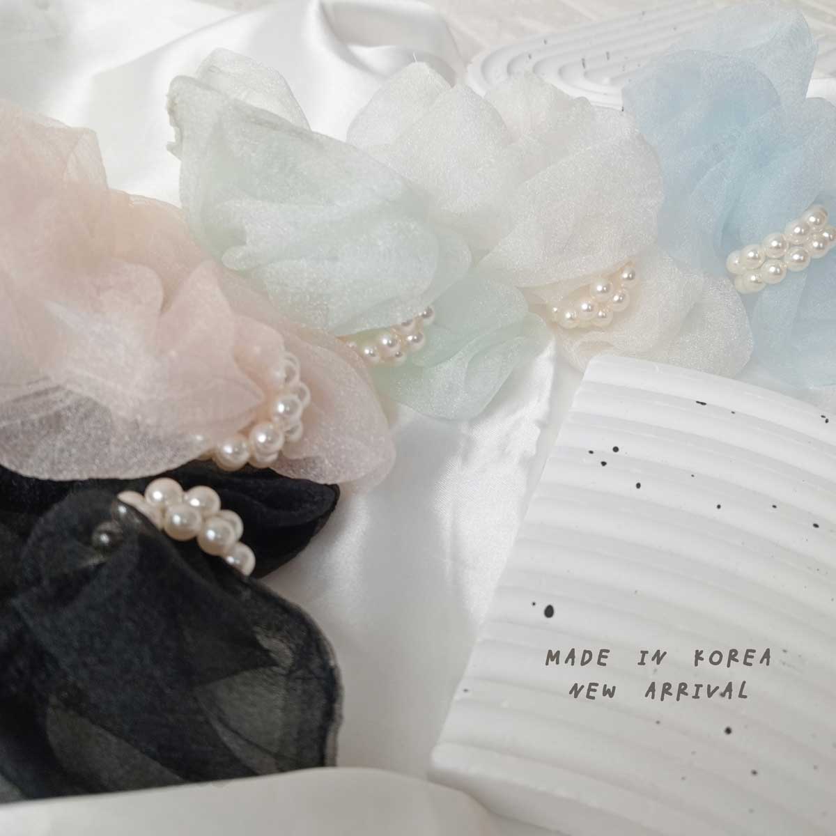 韓國 質感 網紗 珍珠 造型 五色 大腸圈