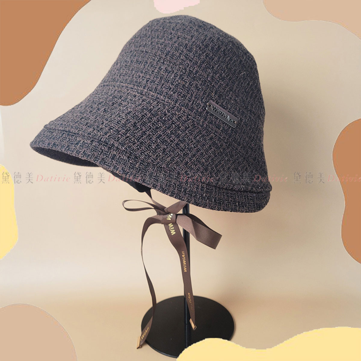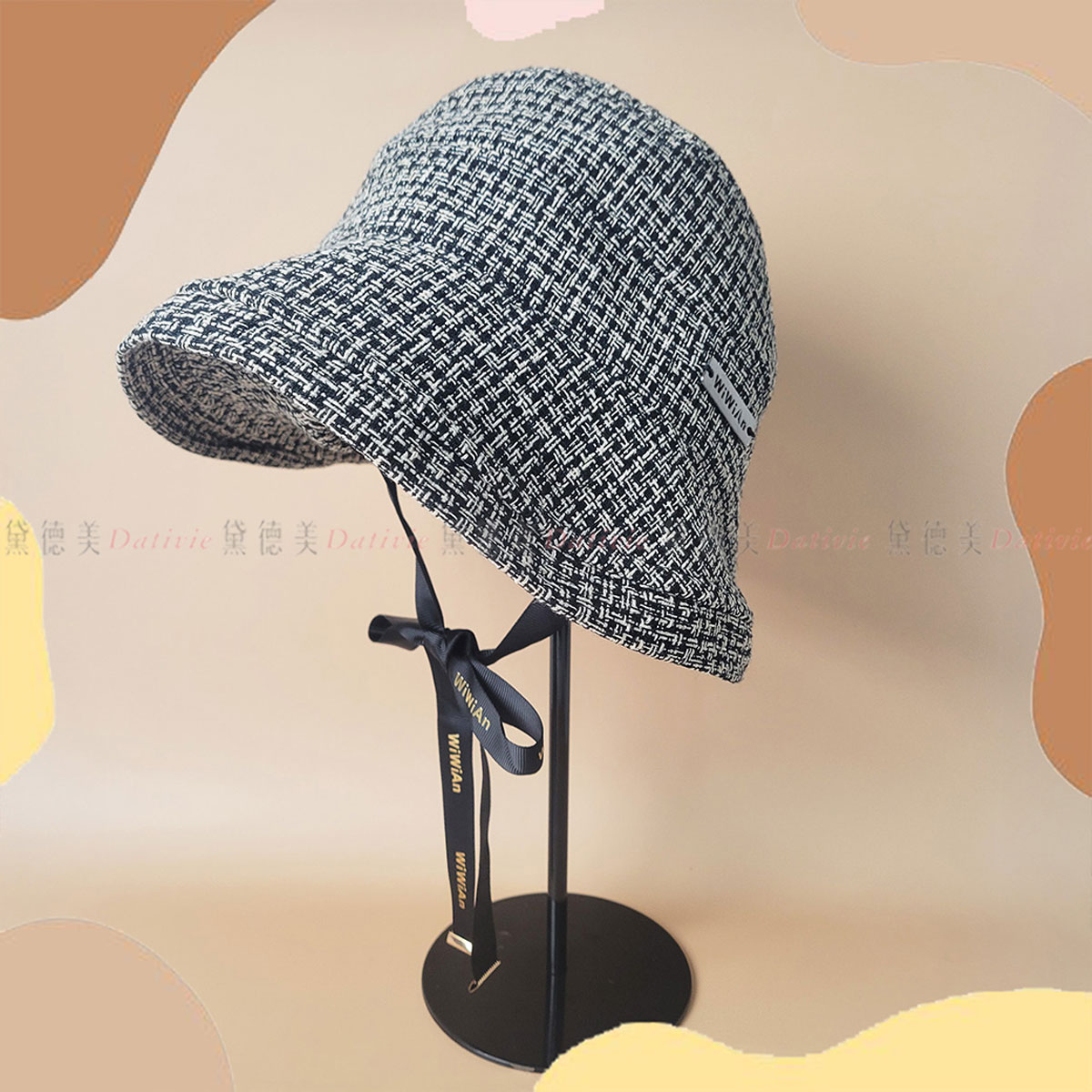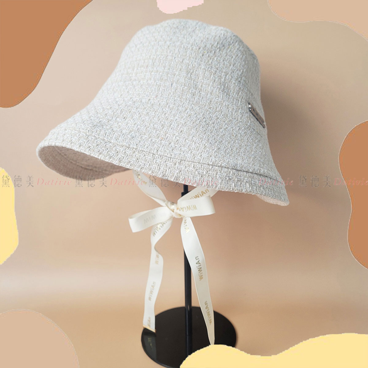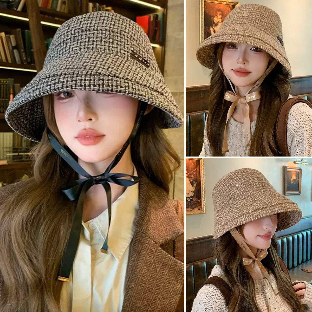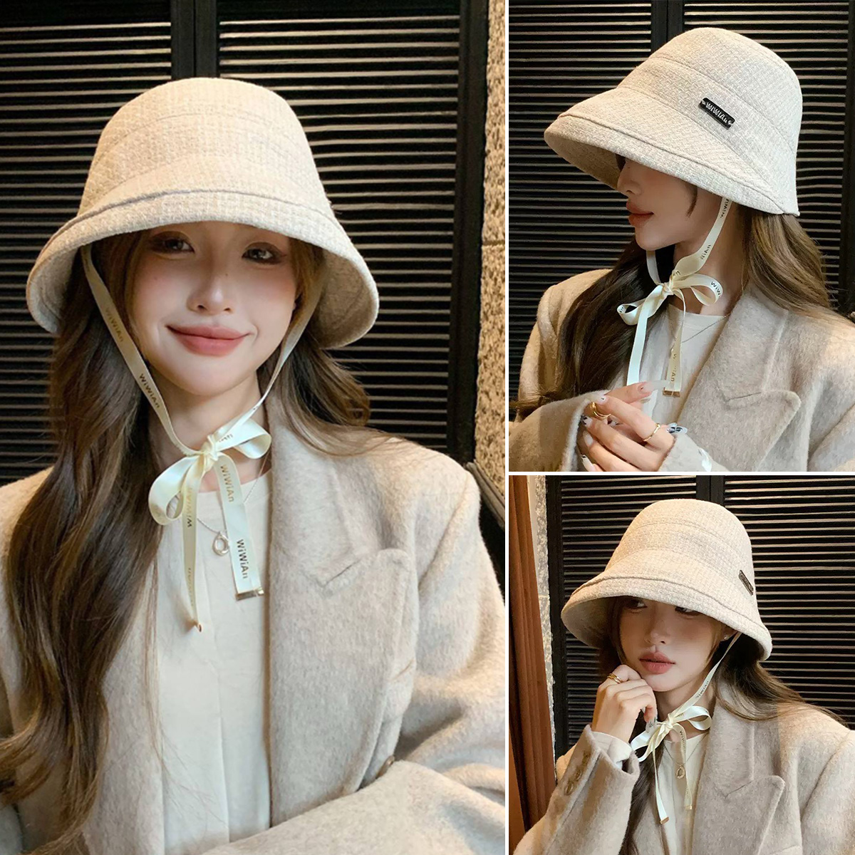 秋冬 名媛 小香風 緞帶 寬帽沿 綁繩帽