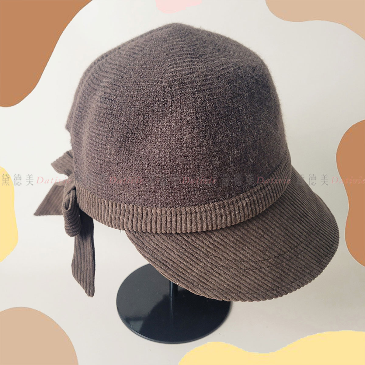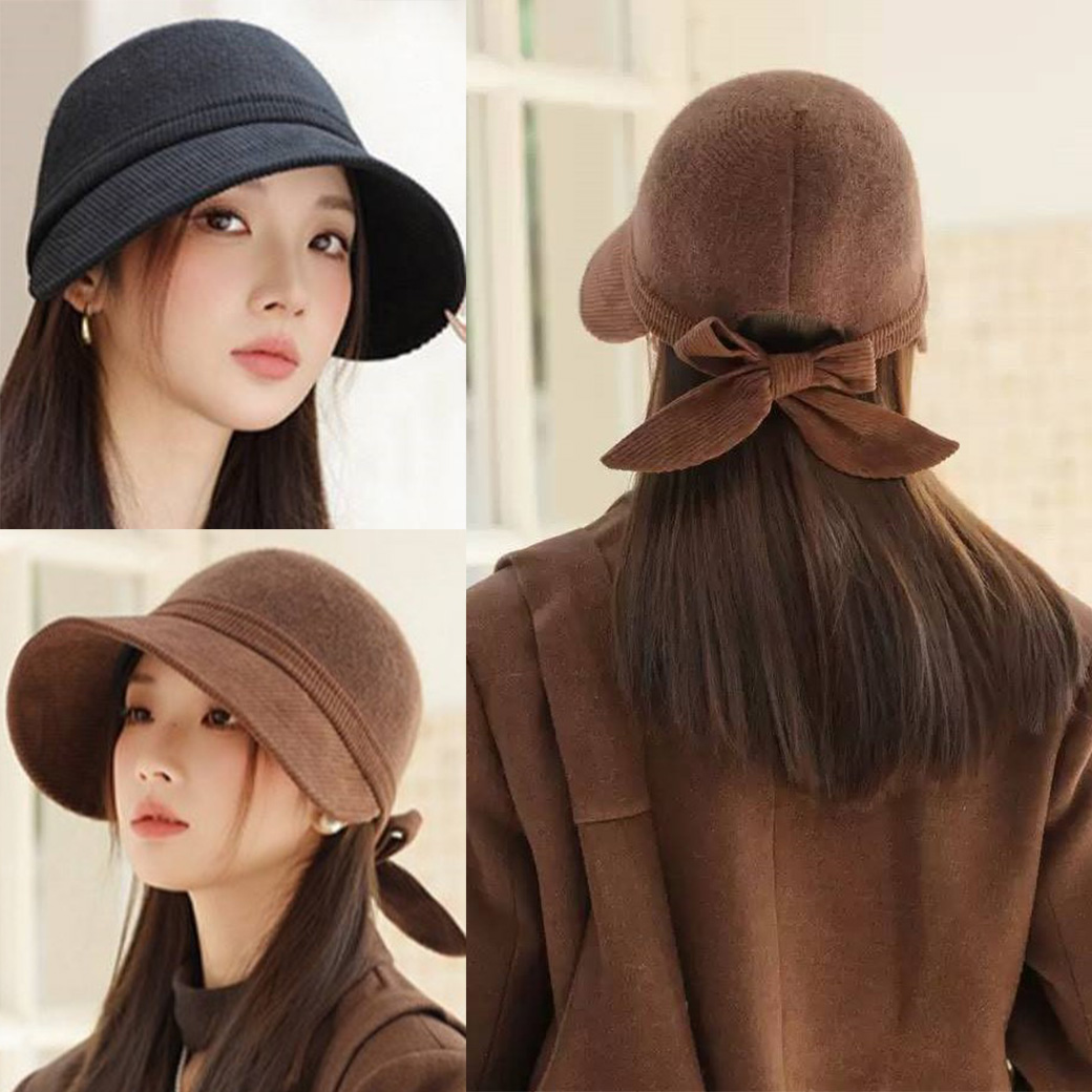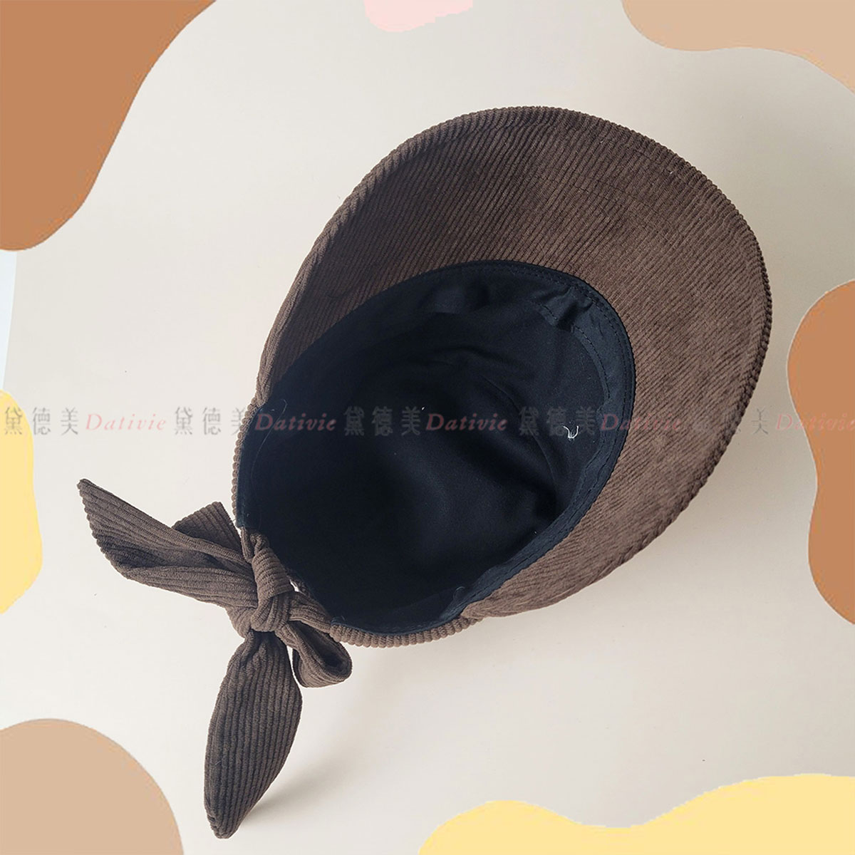 秋冬 簡約 燈芯絨 蝴蝶結 寬簷帽