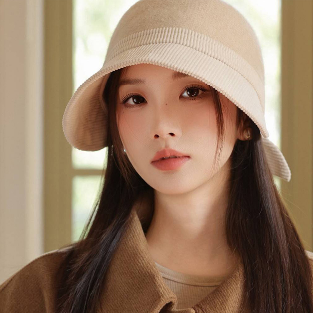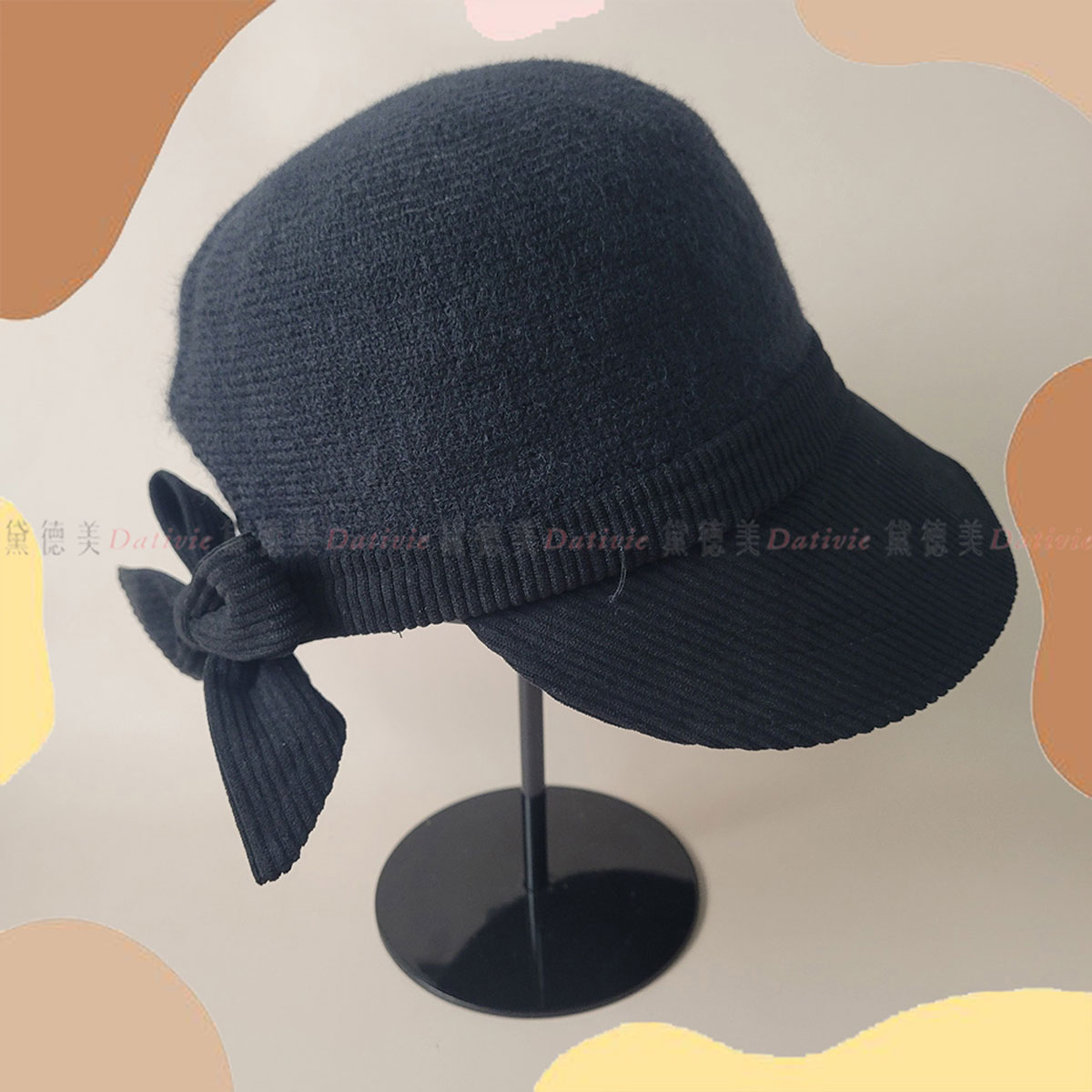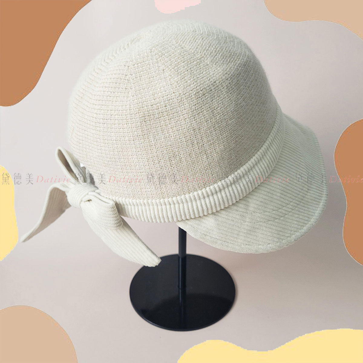 秋冬 簡約 燈芯絨 蝴蝶結 寬簷帽