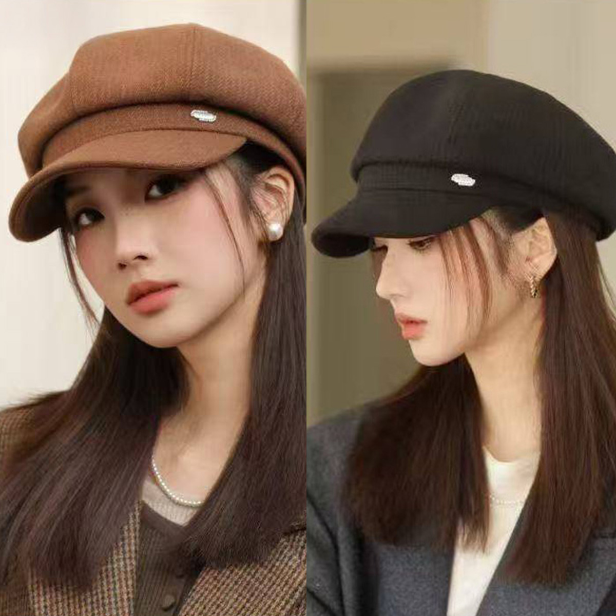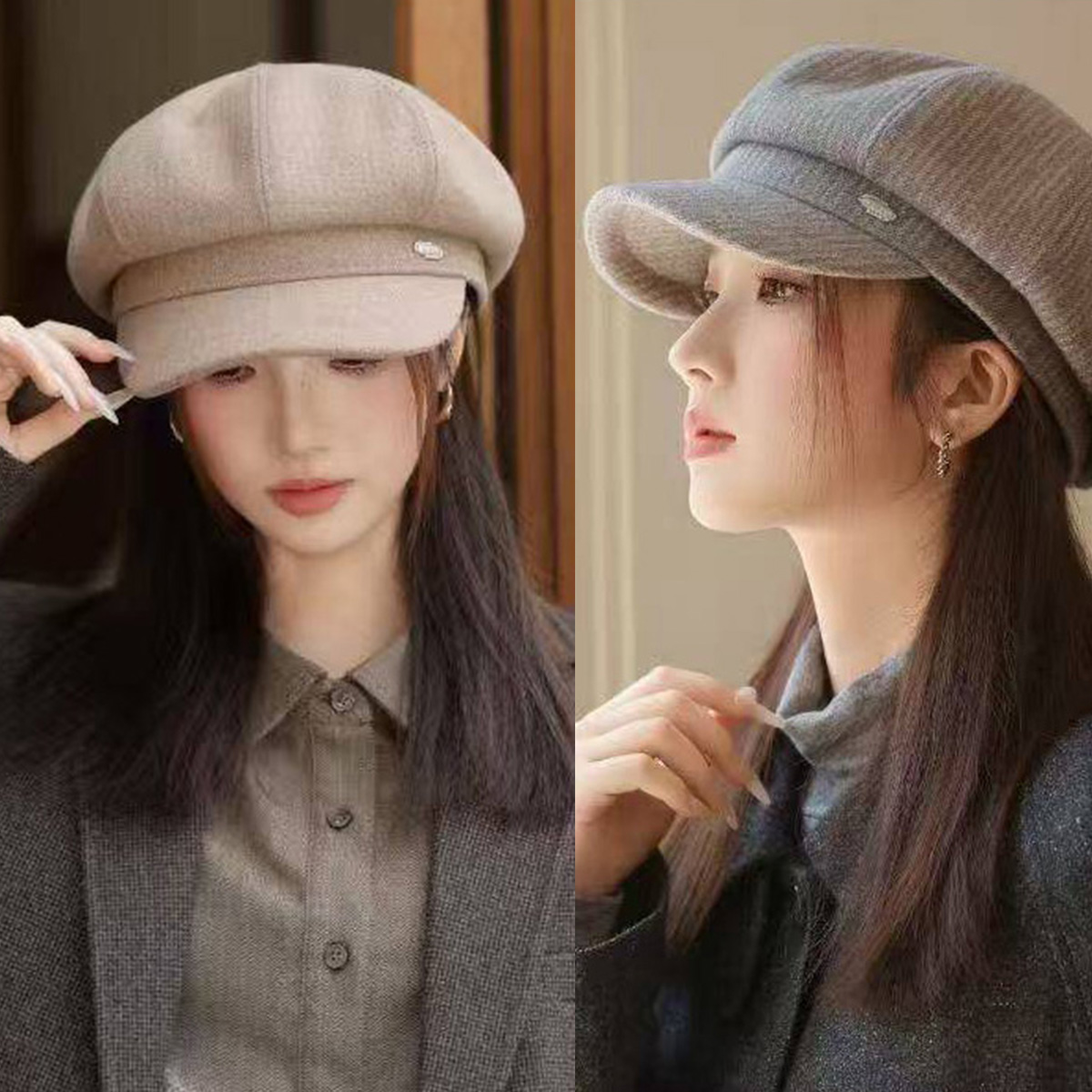 簡約 素色 毛呢 保暖 報童帽